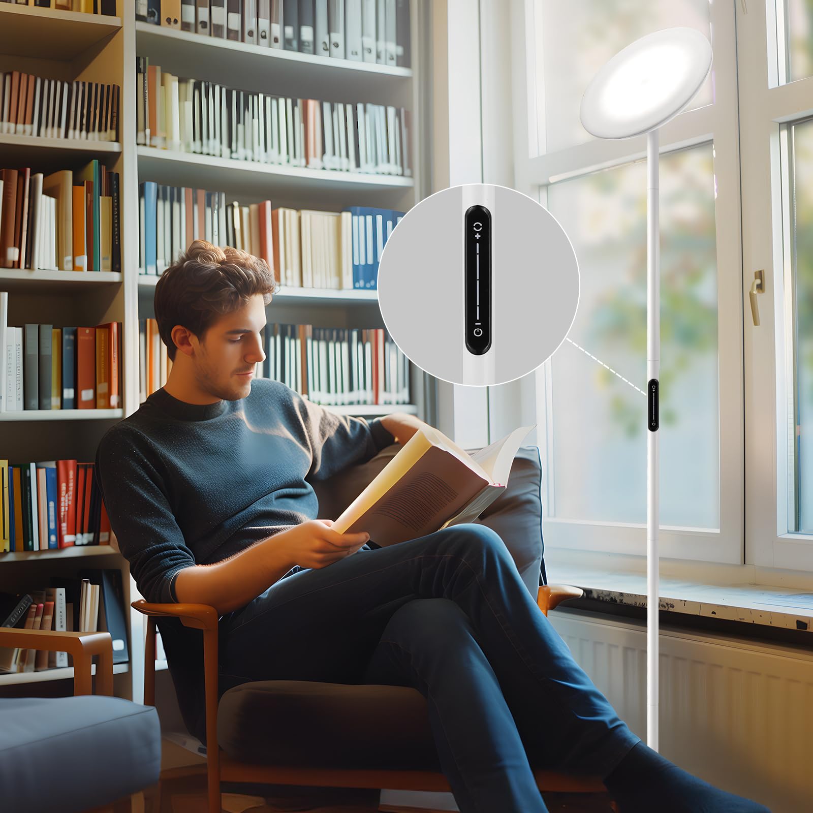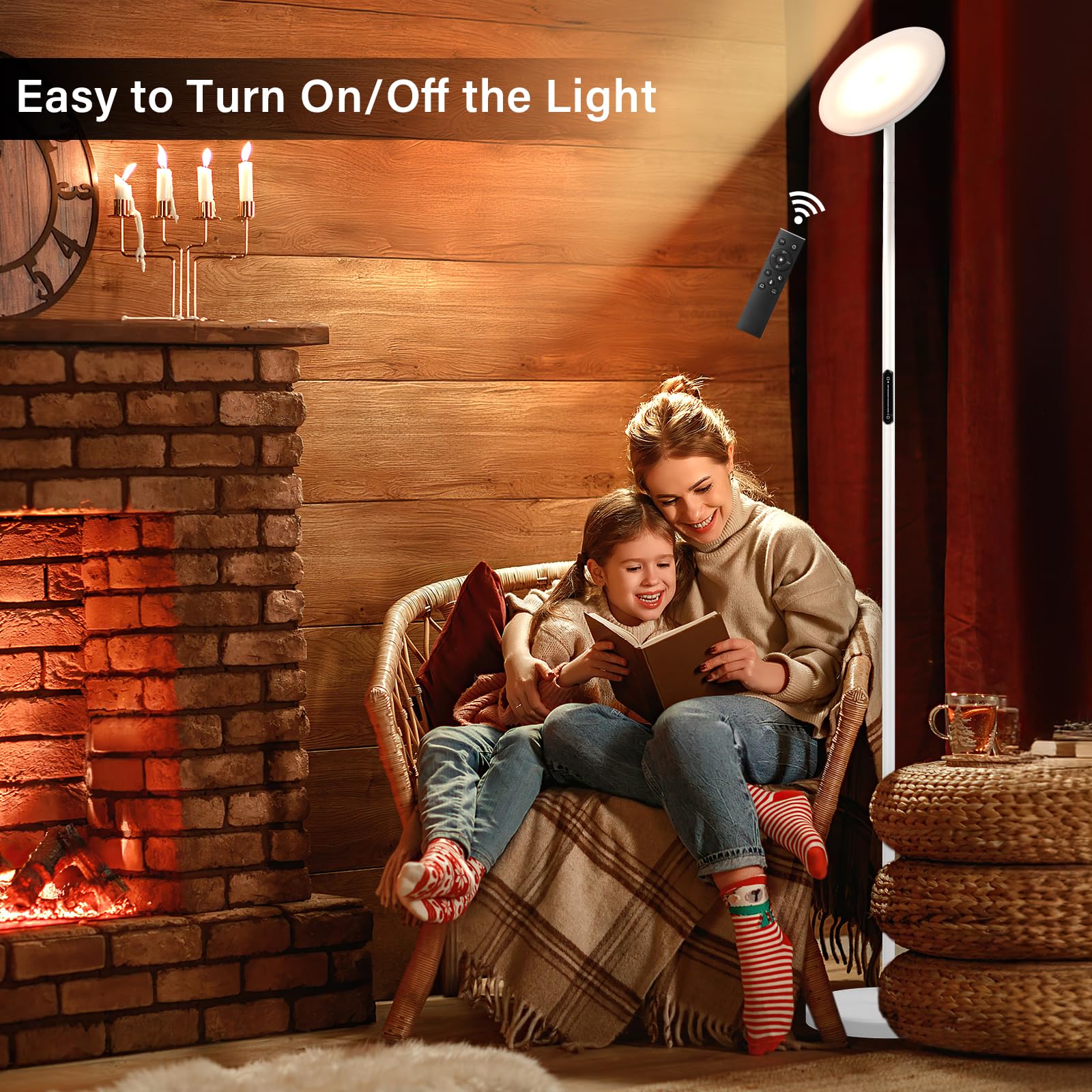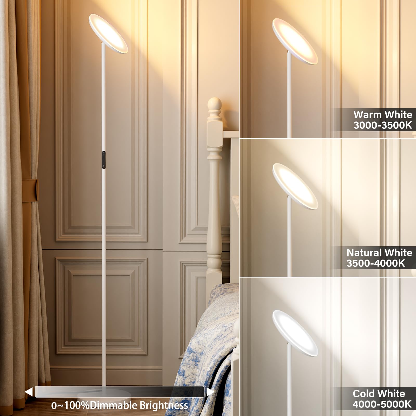 【3 Color Temperatures and Stepless Dimming】Floor lamps for living room has stepless brightness adjustment as well as 3 color-temperature settings from 3000/3500/4000 5000K, for warm white, natural white, and cool white light. Tall pole lamp has different modes for you to choose from: reading, office, sleeping, babycare, etc., as well as ONE Timer Setting function plus.