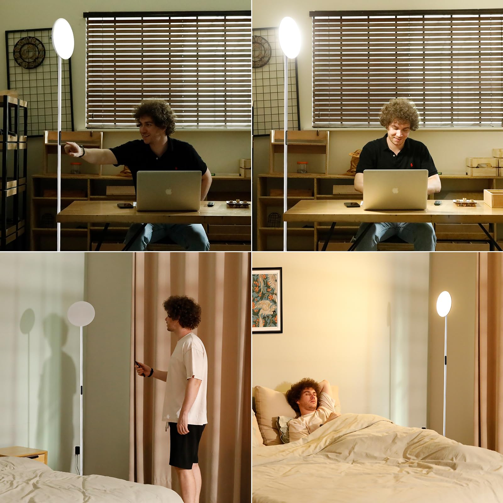 【Floor lamp with Remote&Touch Control】Included remote control allows you to adjust the lighting settings from the comfort of your sofa or bed, with an impressive range of 32.8ft/10m. Additionally, the standing lamp features touch control functionality, enabling you to achieve stepless brightness adjustment by simply performing a long touch gesture. This intuitive control system allows you to fine-tune the brightness levels from 5% to 100%, ensuring that you can set the perfect lighting ambiance for any occasion with ease.