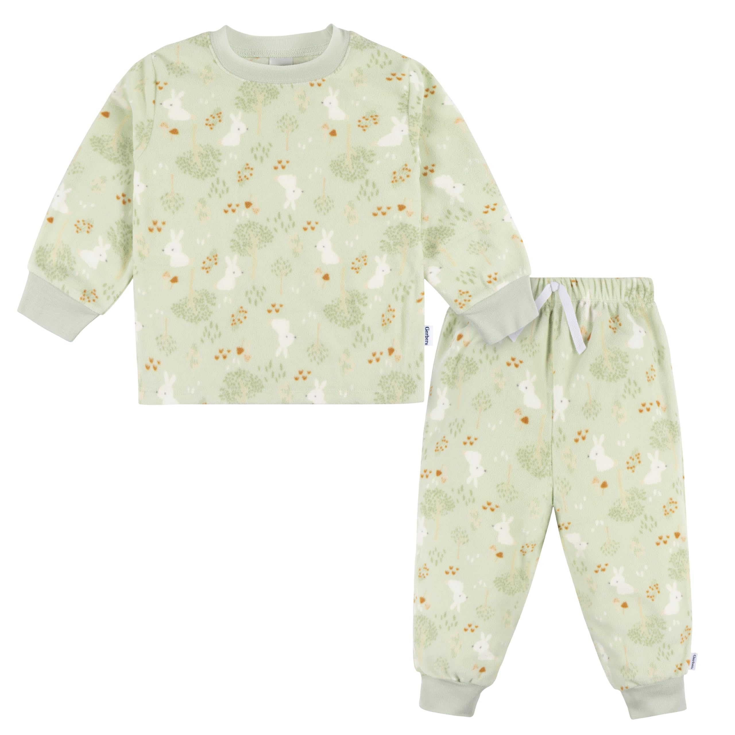 Description Give your little one the best in comfort with these microfleece pajamas designed to provide your baby or toddler with a soft and cozy night's sleep. Designed for cooler weather, this matching top and bottom set boasts comfort-stretch at the neck, wrists, waist, and ankles, ensuring easy movement. Complete with a delightful pattern and decorative twill tape, it's a charming choice for your little one's bedtime. This pajama set is made from flame resistant for child safety.