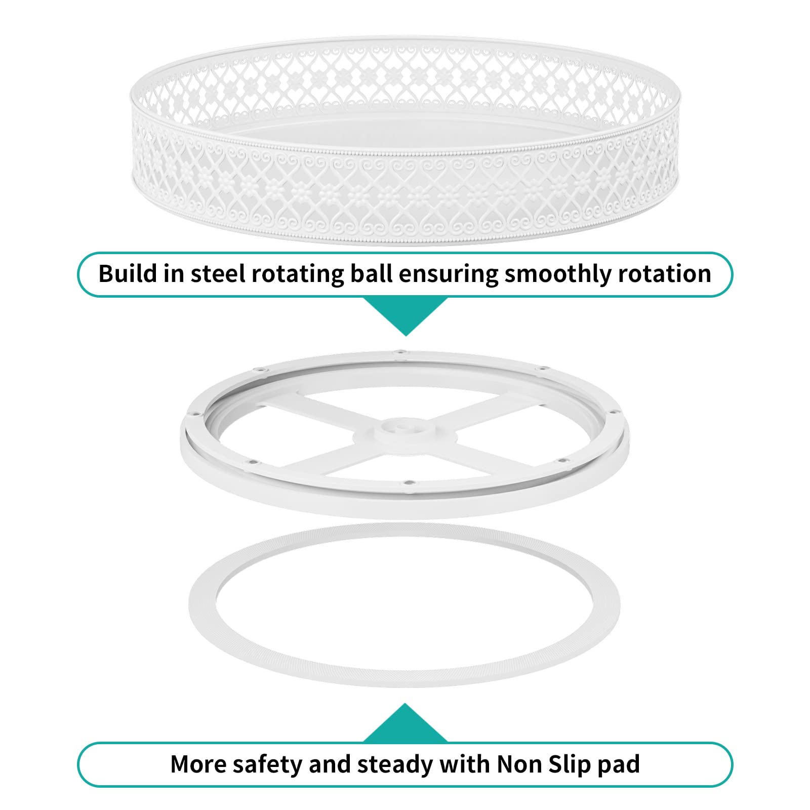 360°Rotating ,Easy to Reach:This Lazy susan tray is equipped with steel ball bearings,which can rotate 360° smoothly ,ideal for deep cabinets,cupboard,corner pantry or countertop storage, make it easy to reach what you need without knock over any bottles.With large rotating base and anti-slip pad design makes this spinning organizer more steady and firm.