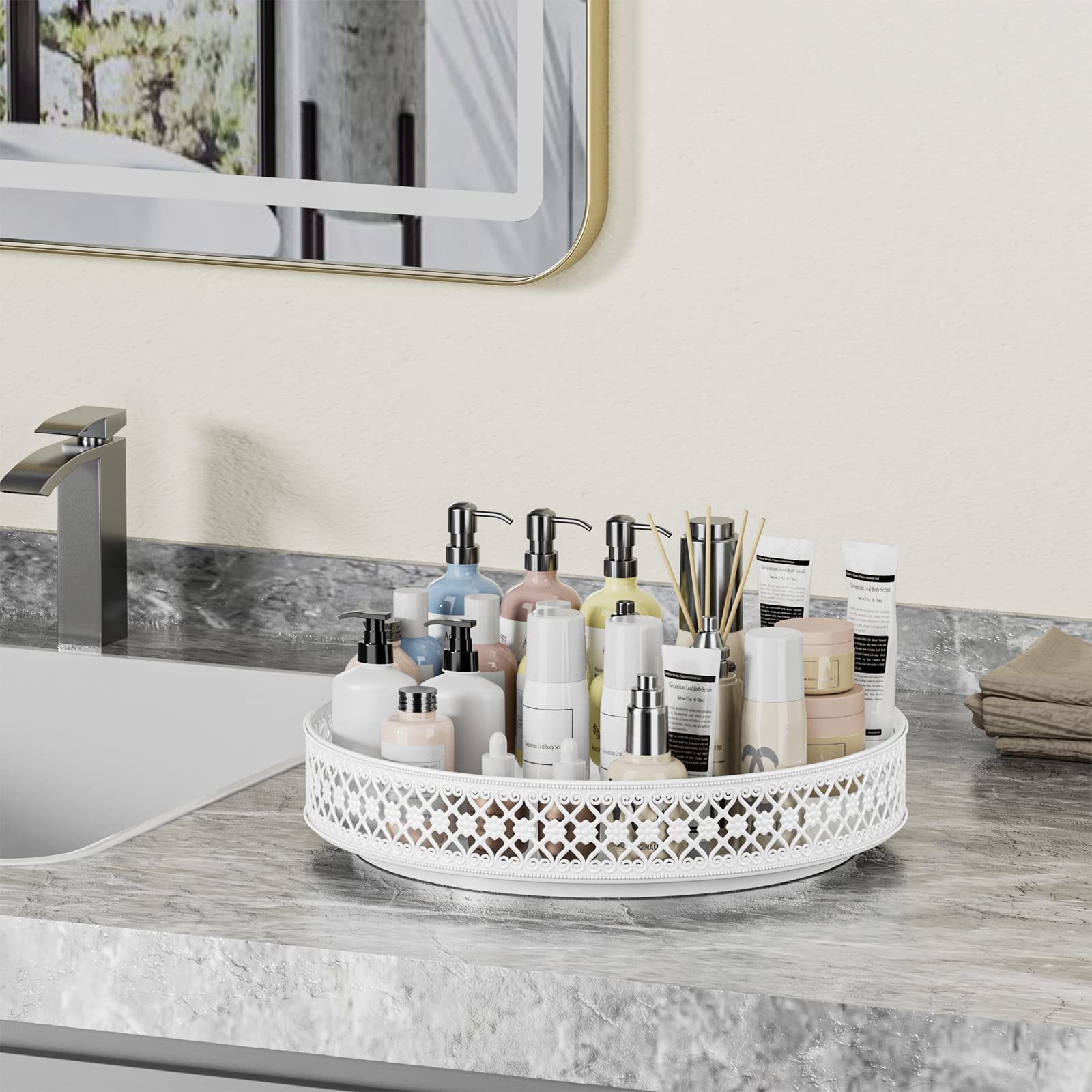 Floral Raised Edges:The heightened edges with beautiful classic floral design . not only provide a special decorative vision but also avoid items from falling when rotating , it's more safe to move this organizer tray from one place to another . Open design make the items visible and easy to access. If you have any questions, please feel free to contact us, Ovicar will provide 100% satisfaction after service.