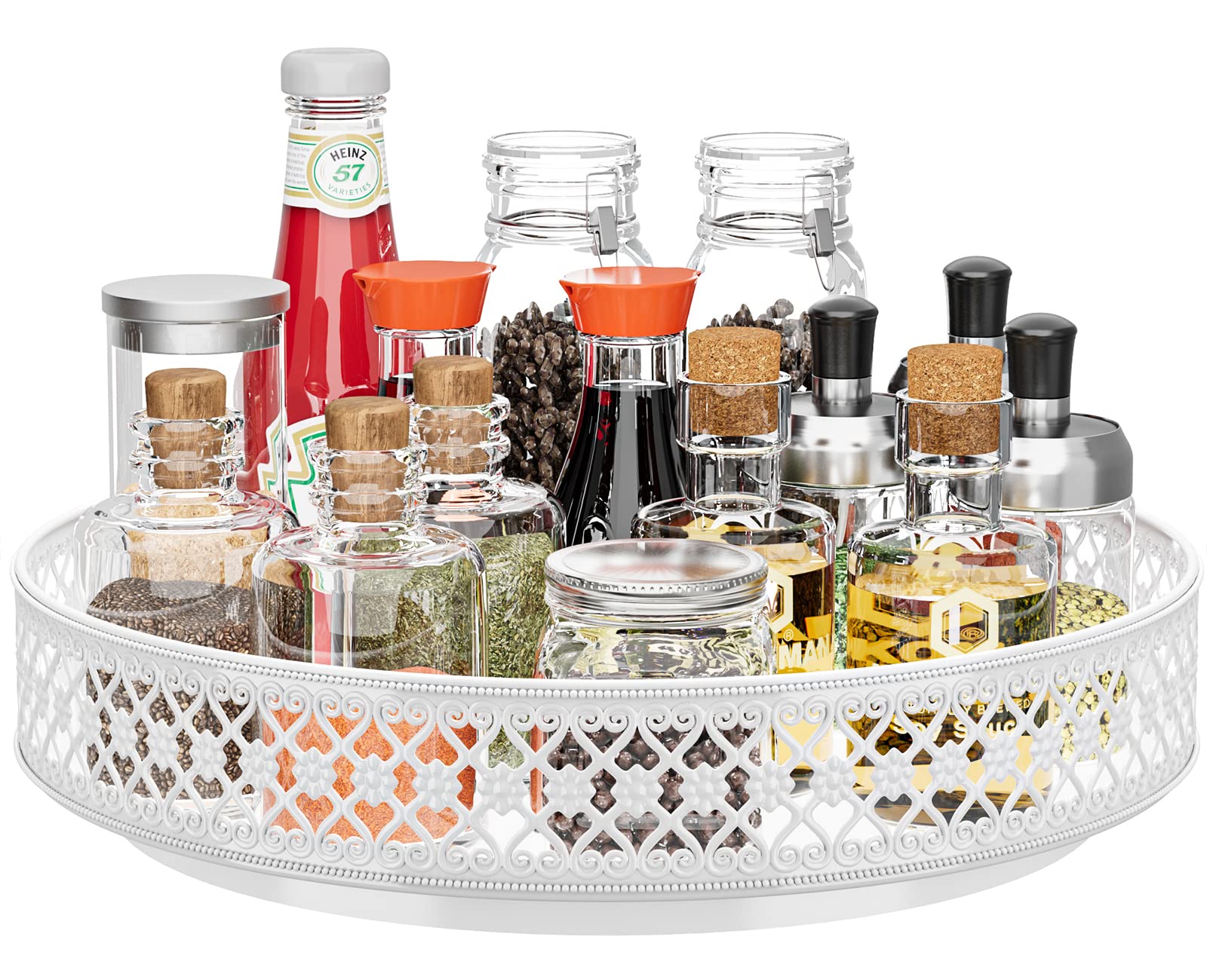 Durable Metal Meterial: This heavy duty turntable organizer is made of quality anti-rust and waterproof metal.Much more stronger and durable than the plastic spinner organizer. Wear-resistant, abrasion-resistant coating can ensure long lasting usage and it's easy to clean .