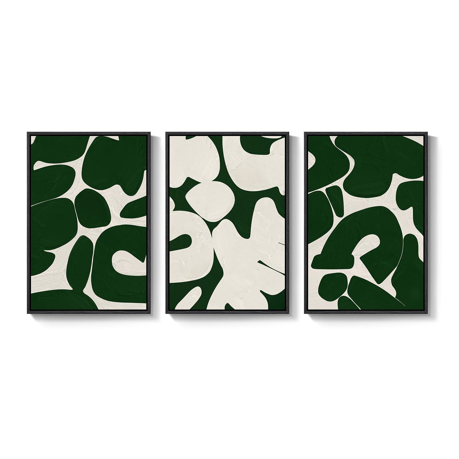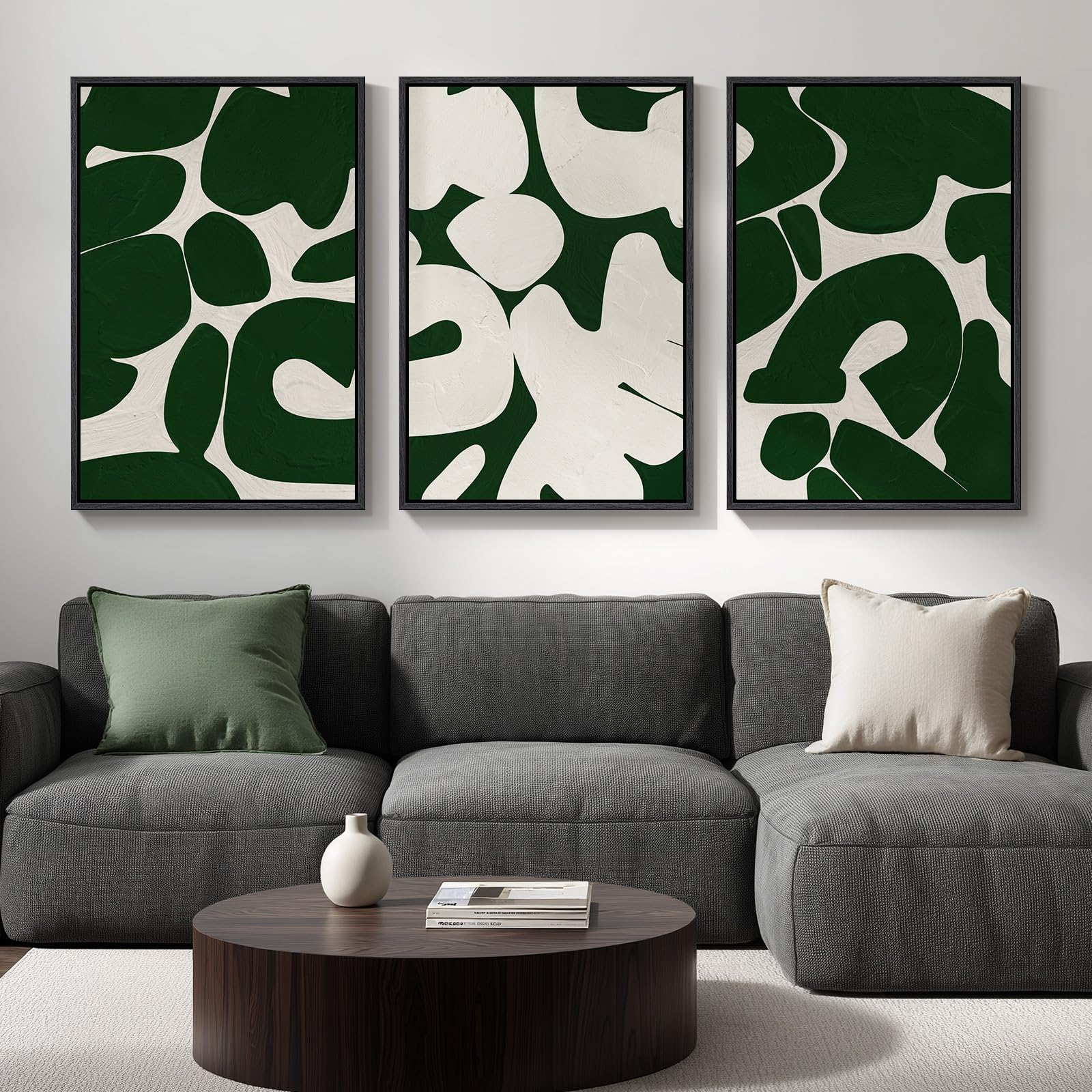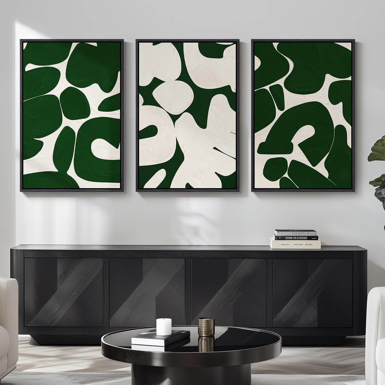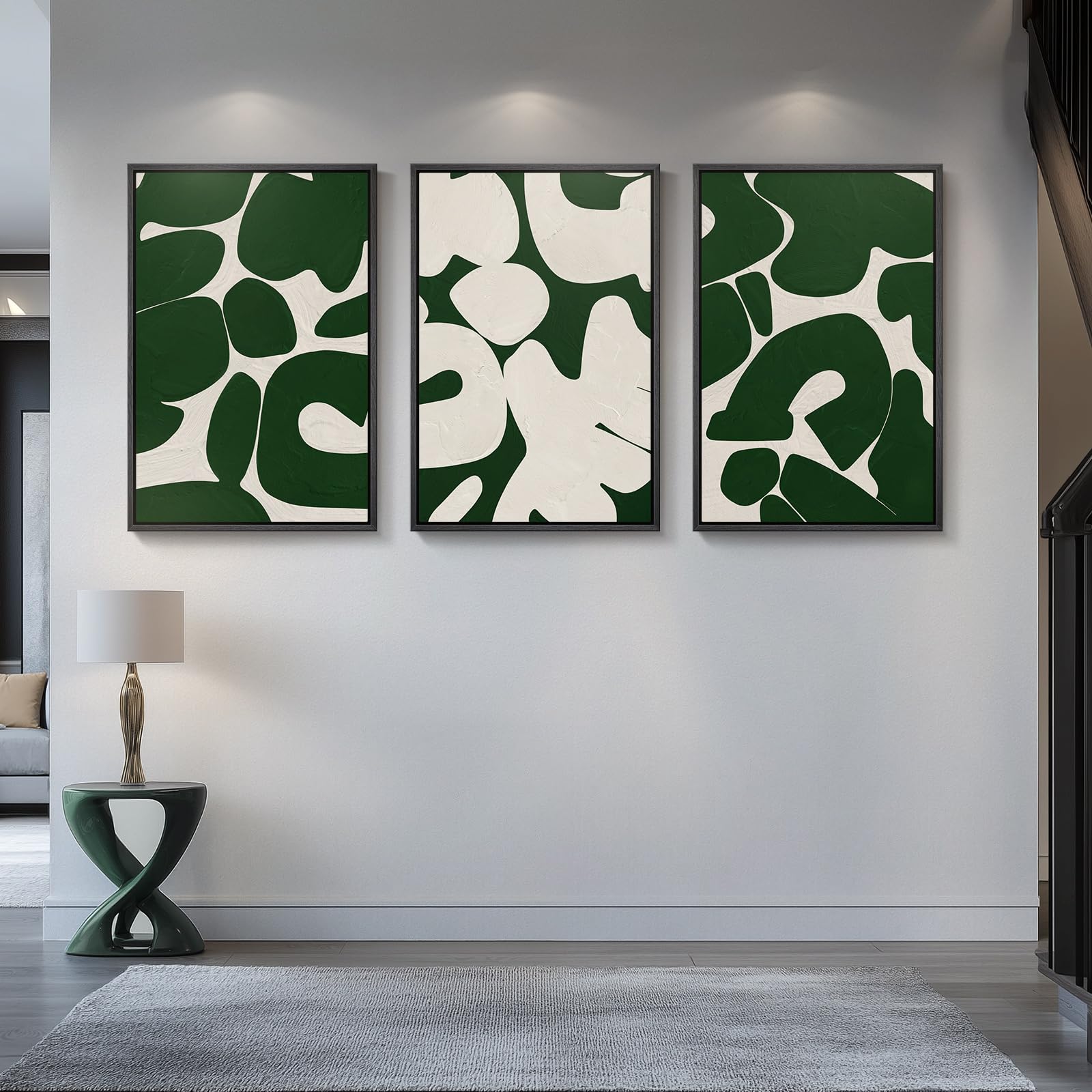 [Abstract Wall Art]: This set of 3 abstract canvas wall art showcases bold green and white organic shapes with a modern abstract design. The striking contrast and fluid forms bring a fresh, artistic energy that perfectly complements contemporary interiors. Ideal for living room, bedroom, dining room, office, or hallway, this mid-century inspired artwork creates a captivating focal point while adding sophistication and style to your wall decor