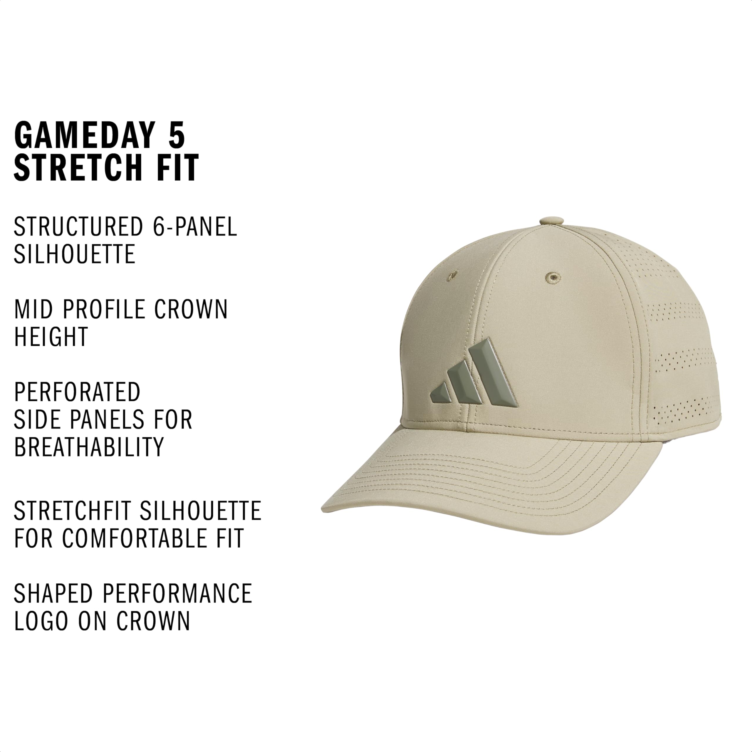 Description The adidas Men's Gameday Structured Stretch Fit Hat is the ideal choice for those seeking versatile mens hats and caps. Designed as a great hat for men, this flexible athletic sports cap offers both style and function. Made from durable poly spandex material, it withstands wear and tear while maintaining its sleek look. Ideal for various activities, whether you're searching for golf hats that men appreciate or looking for that perfect running hat men need, this cap has it all. As a great choice among men's baseball caps, the cap features a snug, stretch fit that adjusts effortlessly. The perforated 3-stripes on the sides provide breathability, making it a great pick as a men's baseball cap. With UPF 50 protection, it effectively blocks harmful UV rays, allowing you to focus on the game. This cap dries fast, keeping you cool and comfortable whether you're on the sidelines or in the heat of a practice session. Elevate your collection of men's hats with this stylish cap.