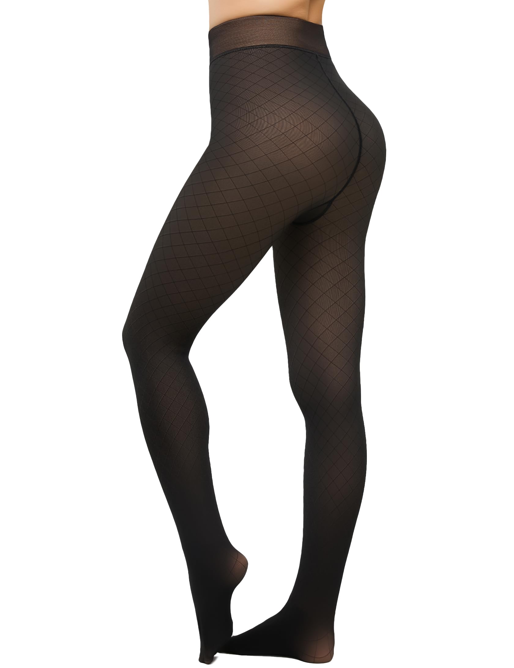 【FAKE TRANSLUCENT DESIGN】: Fake translucent tights look like a sheer stocking from the outside, but the inside is filled with warm fleece. Not only keeps you warm in the cold season, but also shows off your figure. In addition to classic and versatile colors such as black and brown, we have also added a variety of fishnet pantyhose and dot tights styles. Various styles women tight can easily follow your all daily collocation