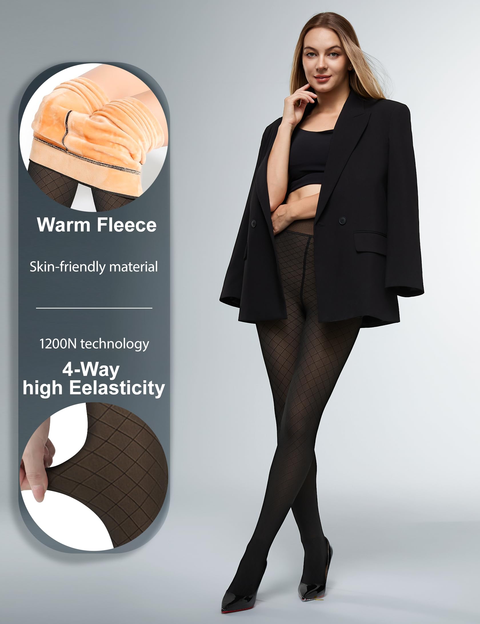【250G WARM FLEECE INNER】: 250g thick tights come with the super warm fleece lining, keep you super warm in cold weather without being bulky. Warm tights are made of skin-friendly material, soft to the touch, not harmful to your skin, no deformation, no fading, no pilling. Real warm high content cashmere to keep your body warm and prevent heat loss. Warm your whole winter