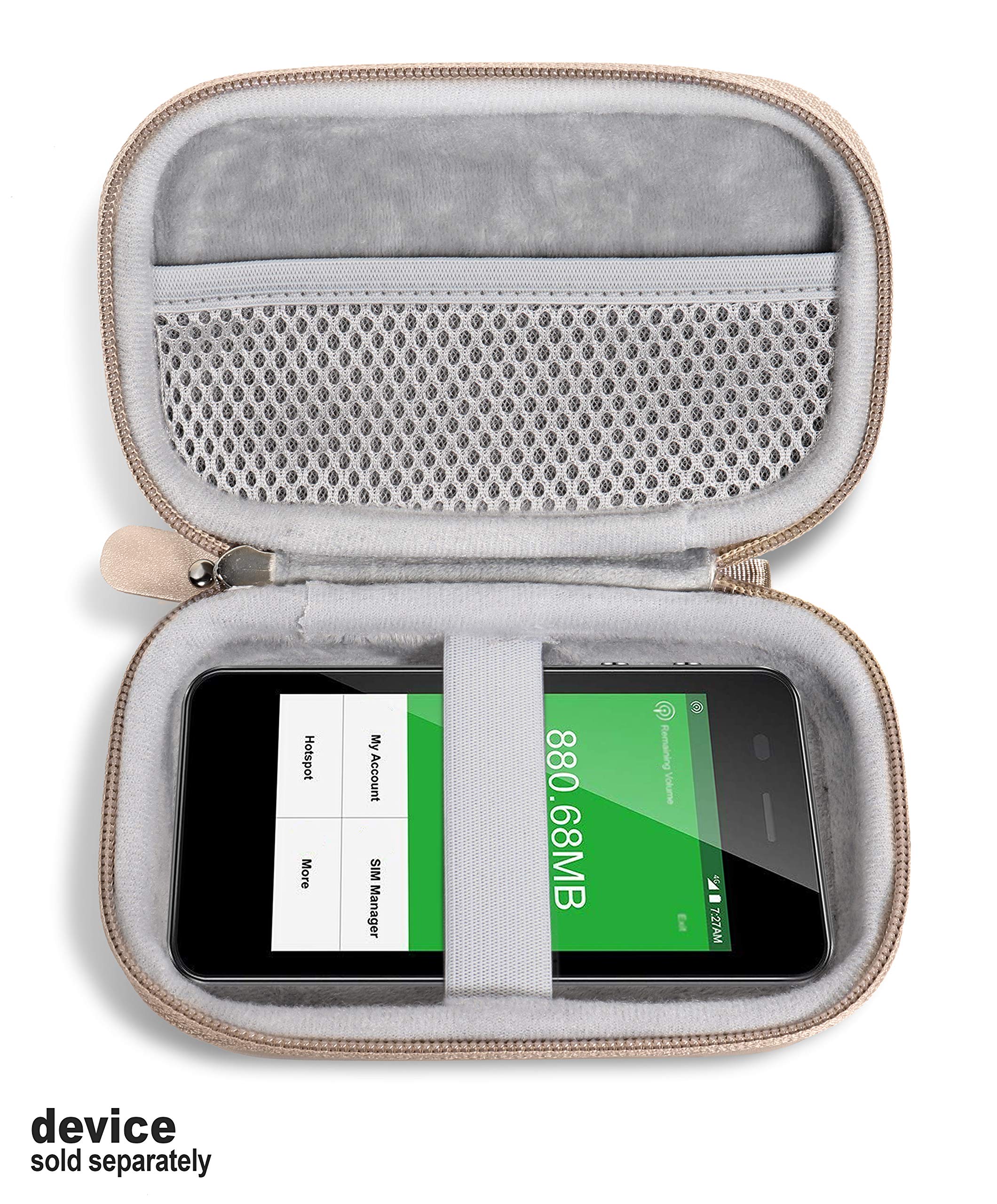 User friendly design: all in one case with elastic secure strap to hold the device in base. And mesh pocket in the lid for accessories. Keeps Hotspot, charger and other small accessories well organized and protected; Fits purse, shoulder bag, suite case. good for home storage and travel carrying
