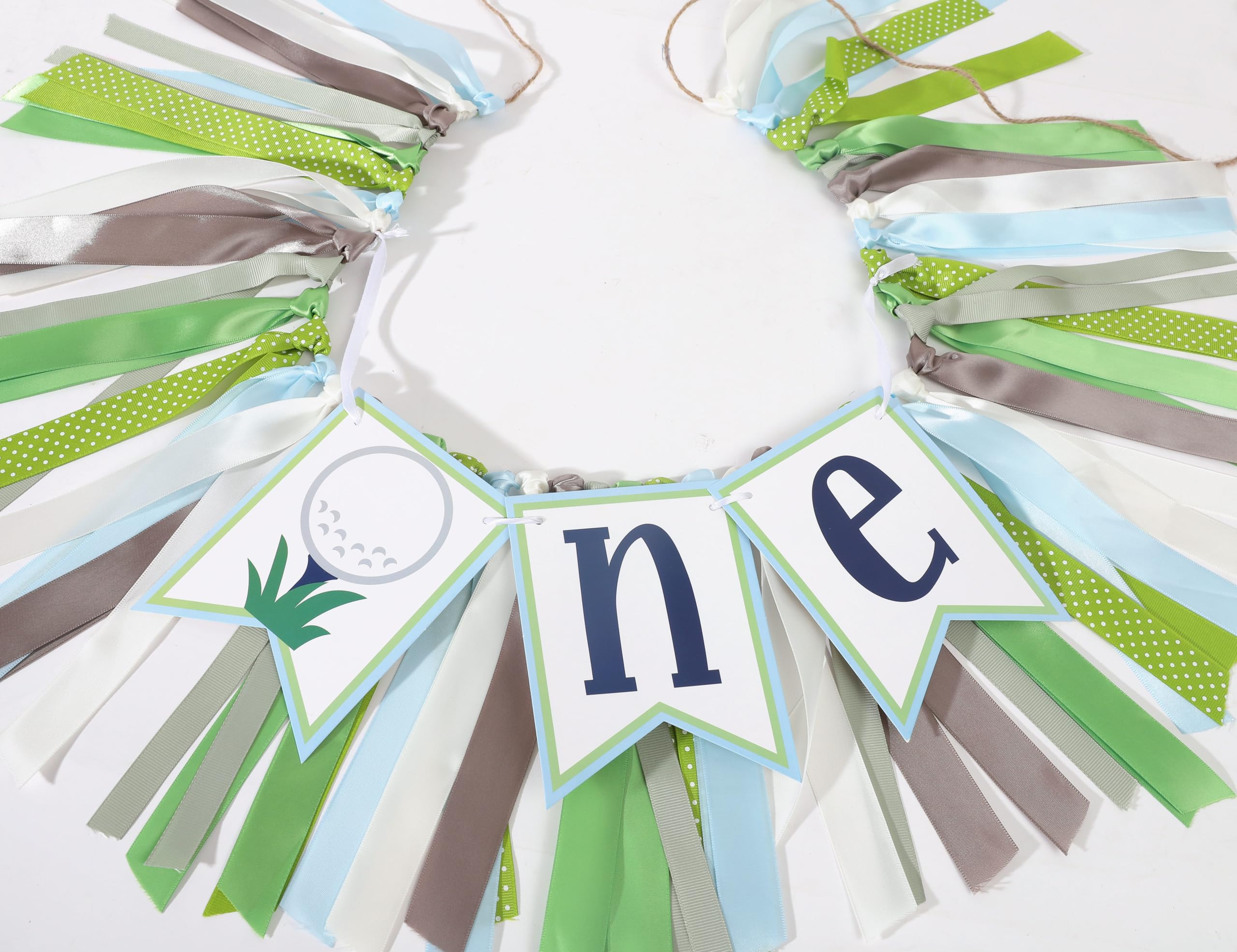 EXQUISITE DESIGN AND GOOD QUALITY - This golf highchair banner with golf shape, light green and blue colour ribbons can attract all the people’s attention. All the material we use is high quality, It can be reused again and again when handled and stored with care.