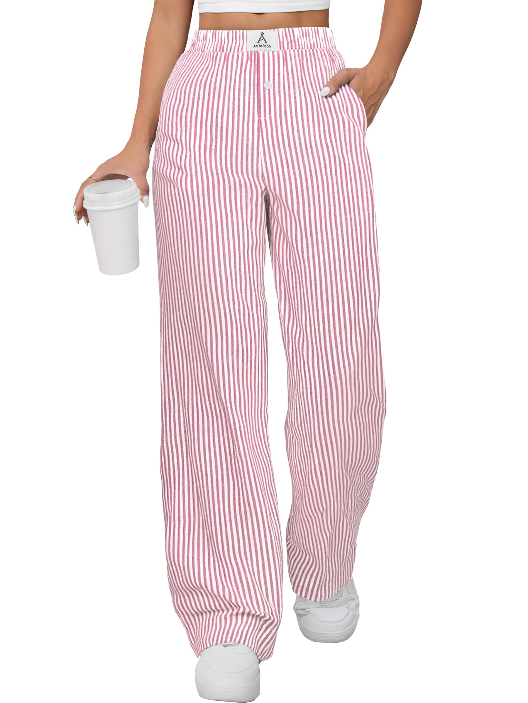 Features - Women's fall pajama pants, lounge trousers with pockets, plaidοΌstripe design, elastic waist, lightweight breathable. This womens pants perfect for daily wear, home, workout, beach, travel.