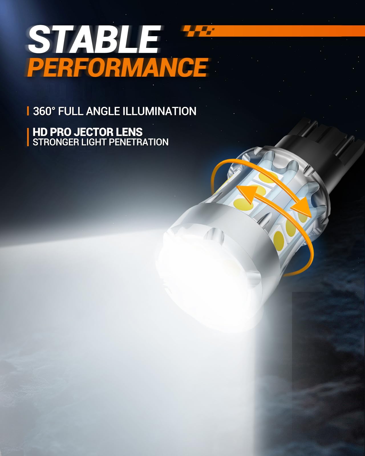 600% Brighter than Halogen Bulb: Each 921 LED bulb features 21 high-brightness 3030-SMD chips, delivering twice the power of 3014/4014/2835 chips or more. This achieves greater luminosity with fewer chips, ensuring safer reversing for you