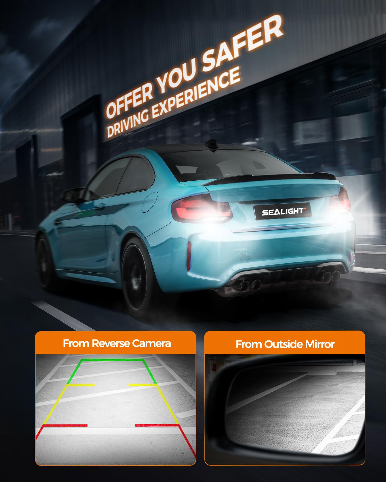 Best Beam Pattern: 921 LED bulb reverse light employs cutting-edge lens embedding technology. Its PC material lens not only withstands high temperatures and delivers superior impact resistance but also minimizes light scattering and loss. This enables the SEALIGHT 921 led bulb to emit higher brightness and achieve a more perfect beam pattern