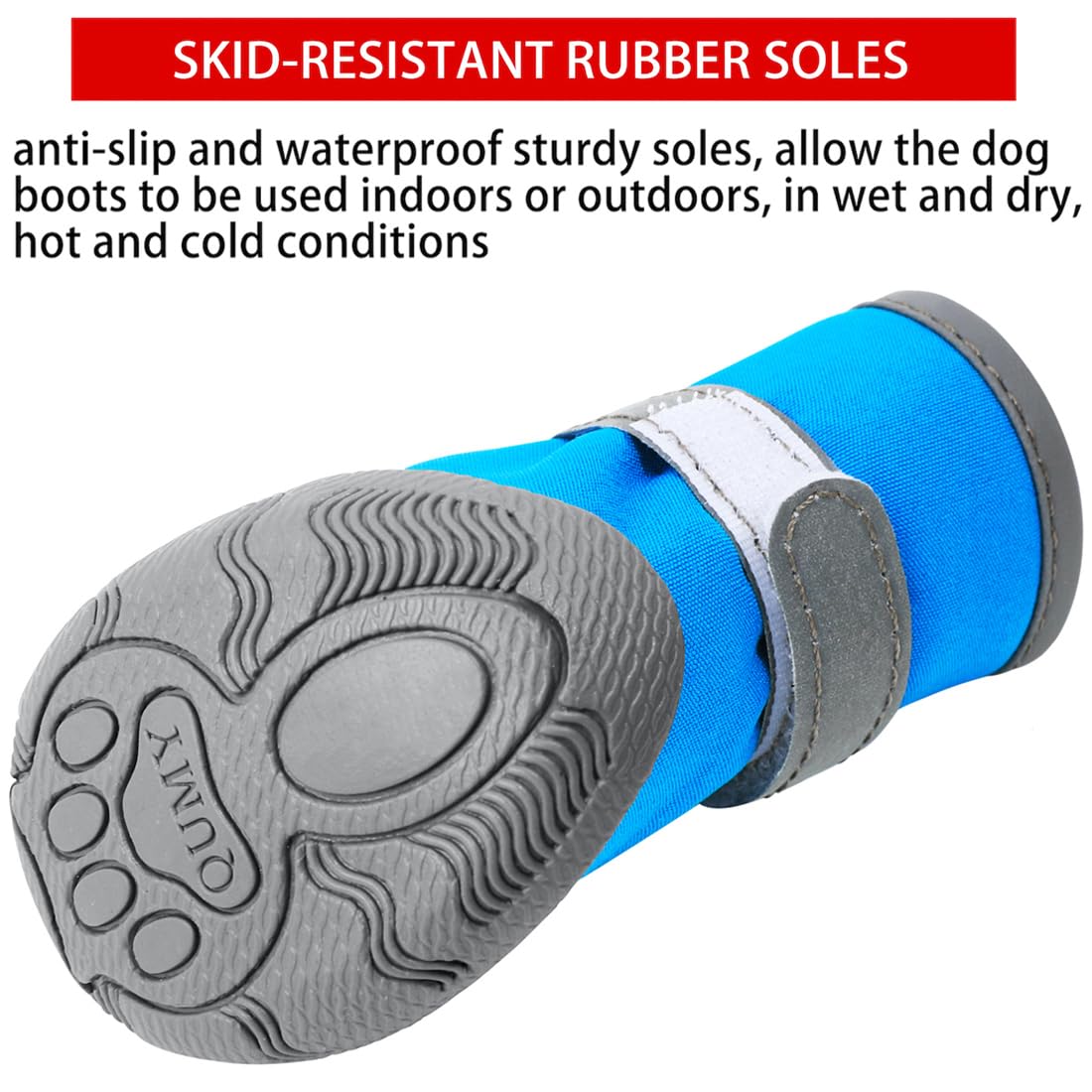 Comfortable and Skid-resistant: High-quality rubber soles give the dog's paws pampering care, soft and comfortable. The slip-proof sole provides stability and traction, protection from rough terrain and hot pavement. Help older dogs to stand up on hardwood floors easier
