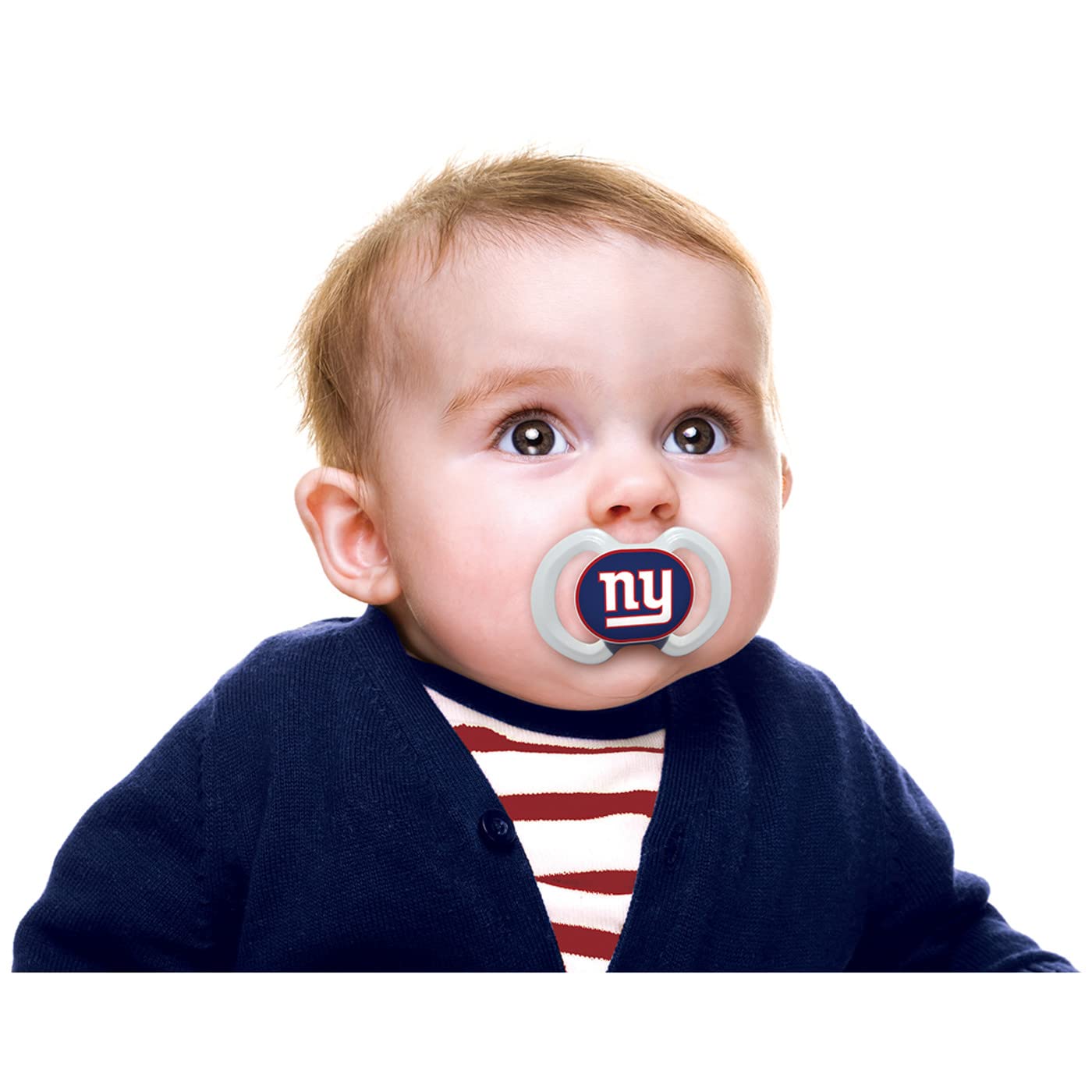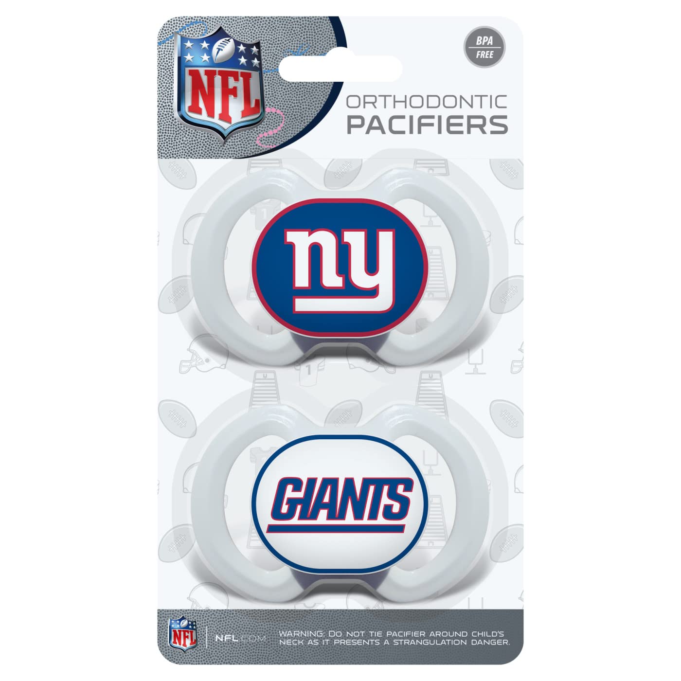 OFFICIAL NFL PRODUCT: Two New York Giants pacifiers. Perfect for showing team spirit. Ideal for New York Giants baby gear enthusiasts.