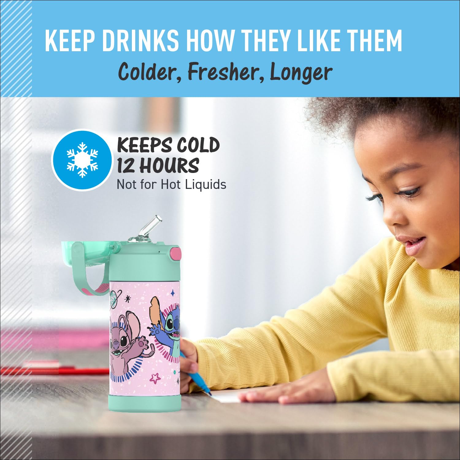 Stays cold: THERMOS vacuum insulation technology keeps drinks cold for up to 12 hours. Our stainless steel water bottles are built so their drinks are as cool on the inside as they look on the outside. Not for hot liquids
