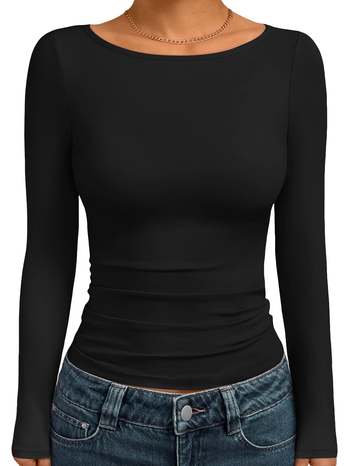 Soft Material: Crafted from a blend of 88% polyester and 12% spandex, this long-sleeve top is lightweight, ultra-soft, and highly stretchable. It offers a second-skin feel, making it an ideal layering piece or standalone top