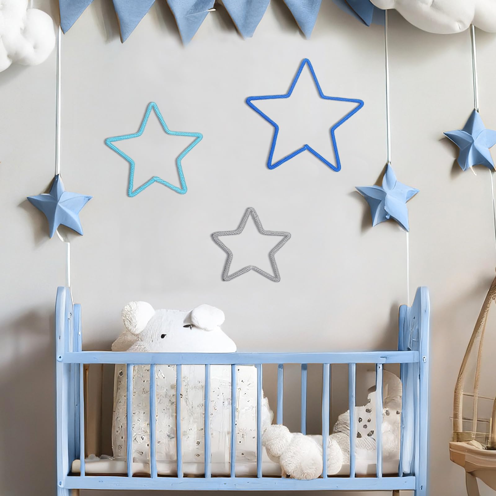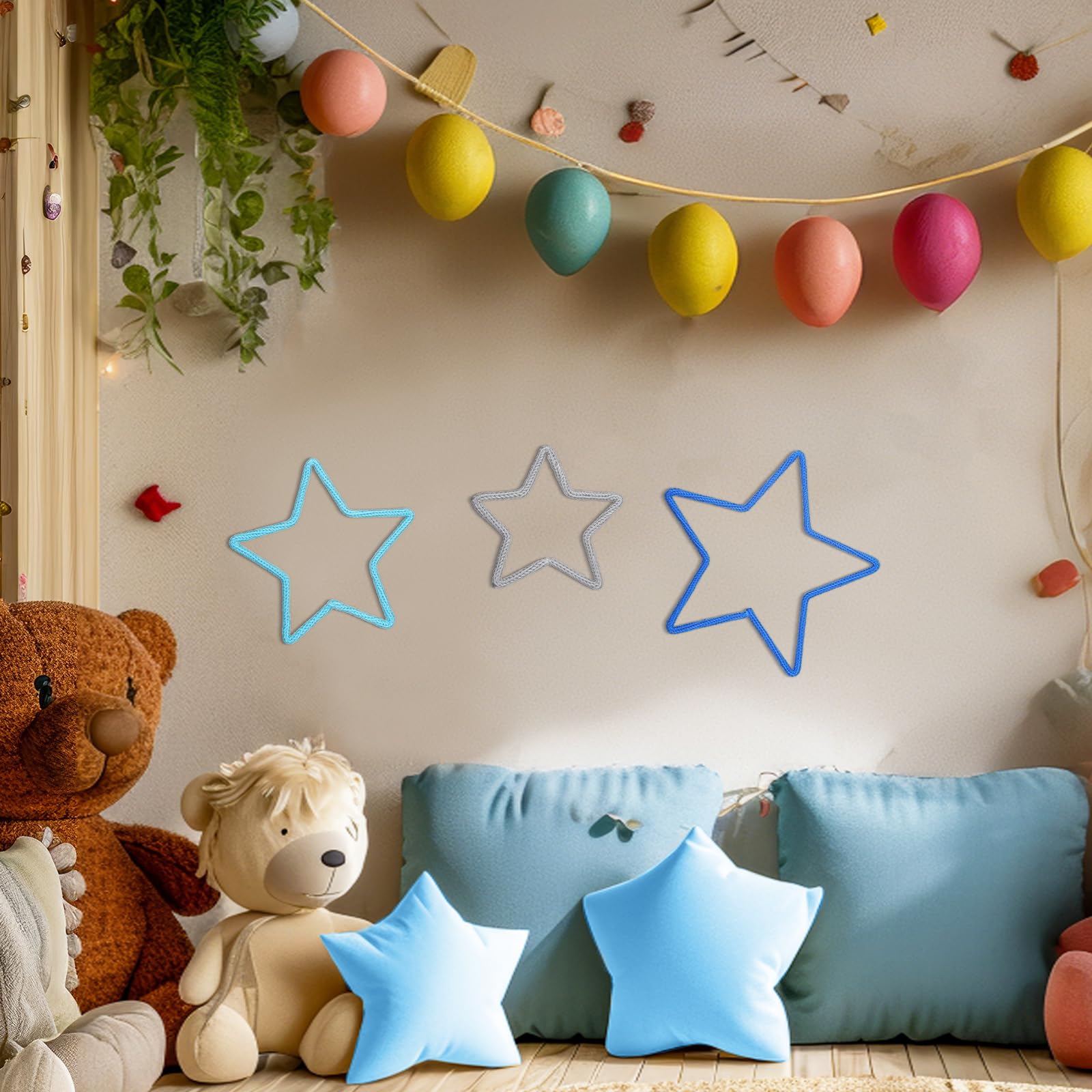 Ideal Sizes for Layered Styling: this 3-piece blue star wall decor comes in three sizes; The large star measures 9.84 x 9.84 inches, while the other two stars are 7.87 x 7.87 inches and 5.9 x 5.9 inches respectively, creating a beautiful layered effect; This combination forms an eye-catching decoration that can easily blend into most rooms