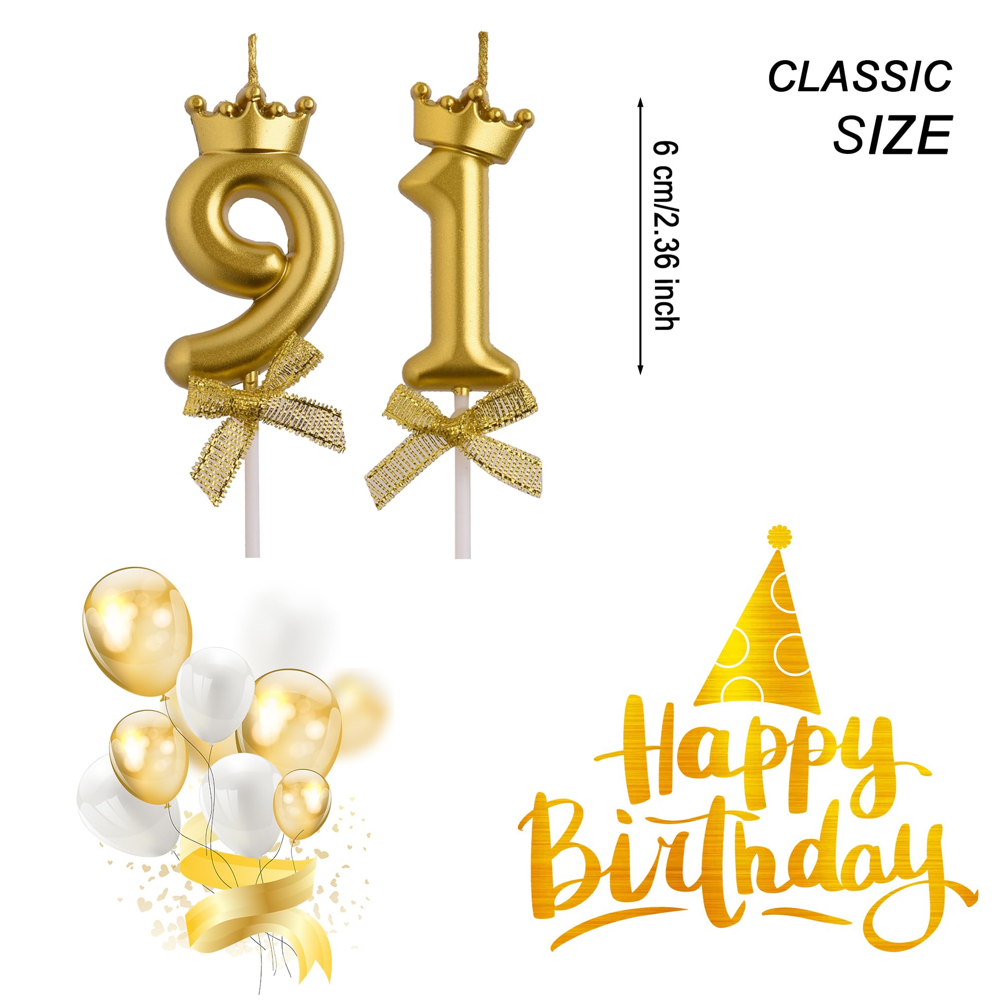 Birthday Candles Enhance your birthday celebrations with our exquisite 'Birthday Candle' set. This premium-quality duo features the numbers 9 and 1, elegantly embellished with a crown motif. Perfect for marking the milestone of 91 years. These candles are easy to use, ensuring your cake shines with a warm, inviting glow. It's not just a candle; it's a thoughtful gift that elevates any birthday occasion. Package included: number candle 9 and number candle 1
