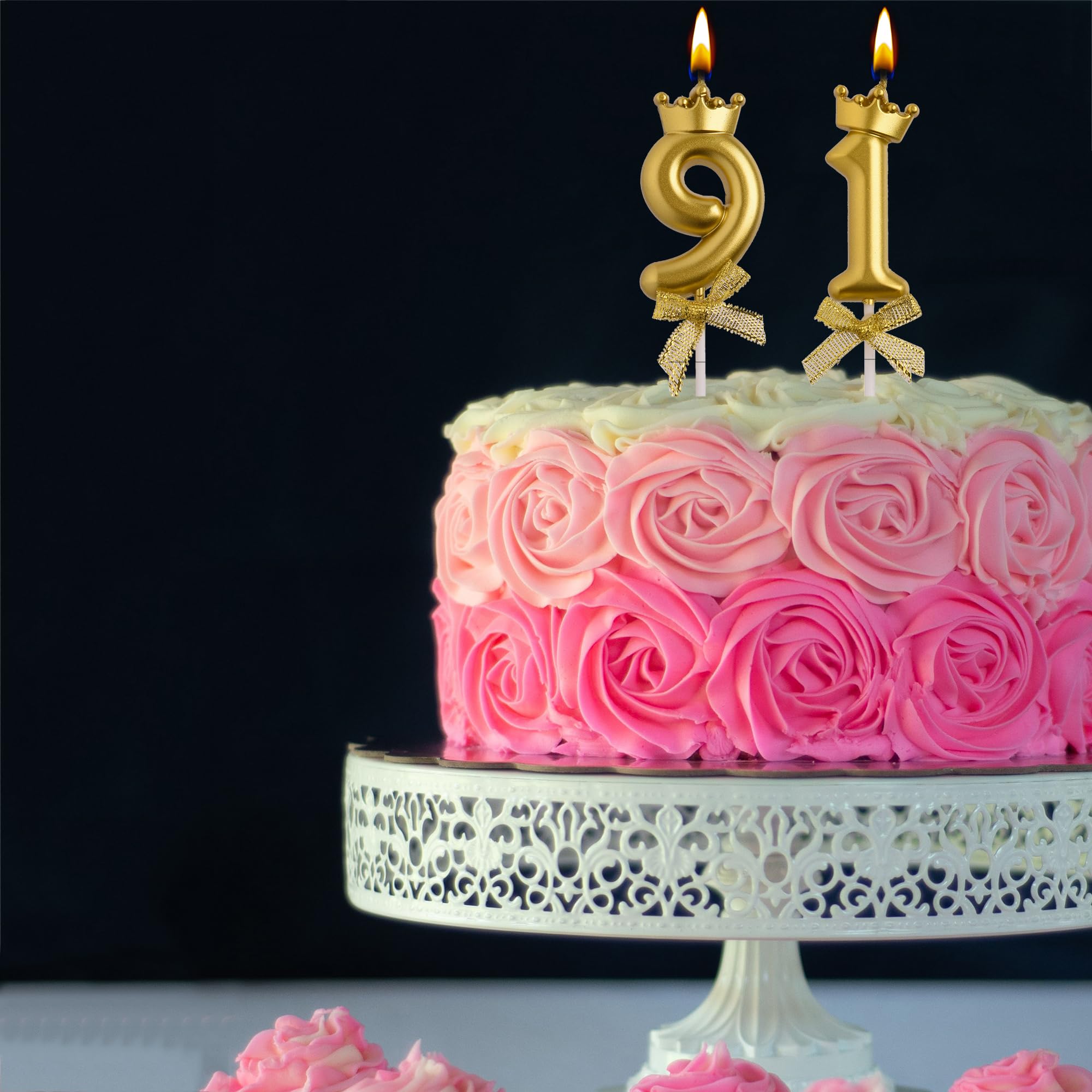 Elegant Number Candles: Celebrate 91 years in style with our exquisite birthday candles. This set includes two candles featuring the numbers 9 and 1, adorned with a regal crown motif
