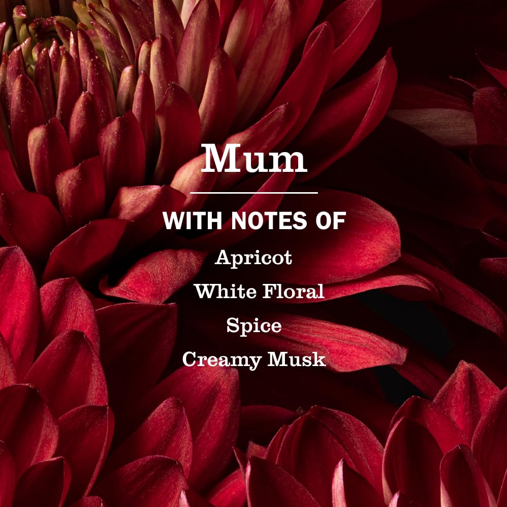 GARDEN-INSPIRED SCENTS: The grand chrysanthemum, let’s just humbly say Mum, blossoms in fall with a scent that is warm and spicy, floral and herby. Let's hear it for late bloomers With scent notes of: apricot, white floral, spicy, and creamy musk