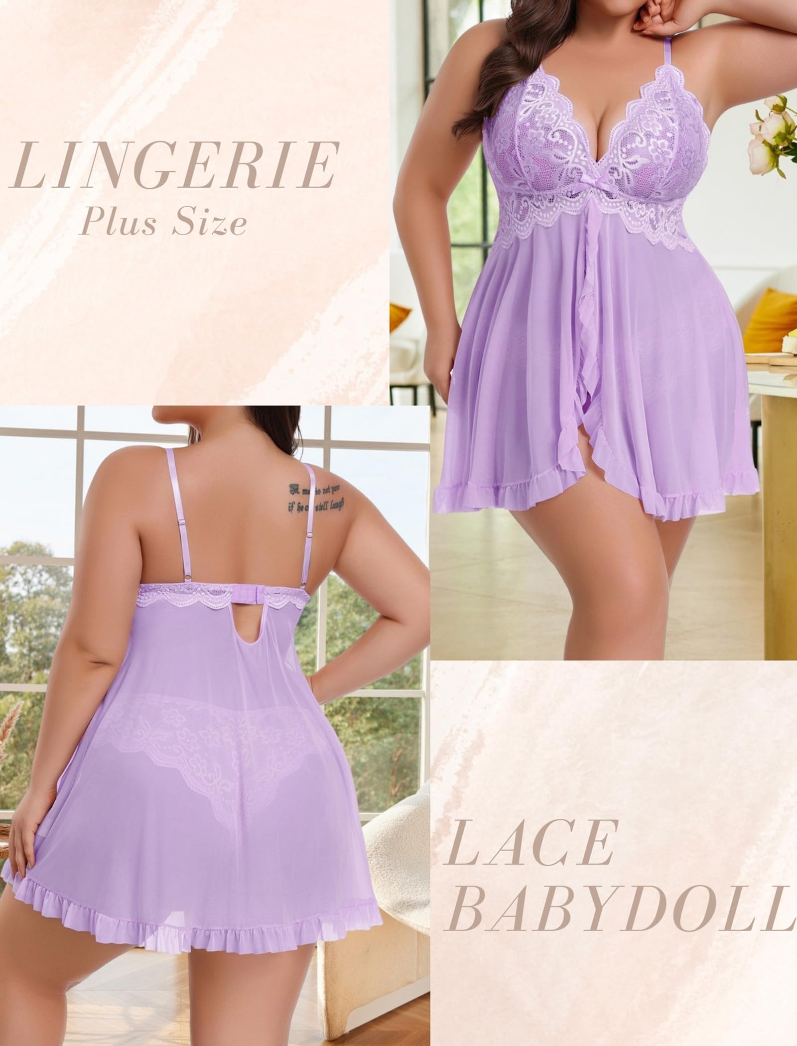 【Package Content】1 x Plus Size Lingerie Dress (No underwire)+ 1 x Women's Lace Panty.If you're not that busty of thick from the bottom I suggest you order your normal size. But if you are order a size bigger that for a perfect fit!