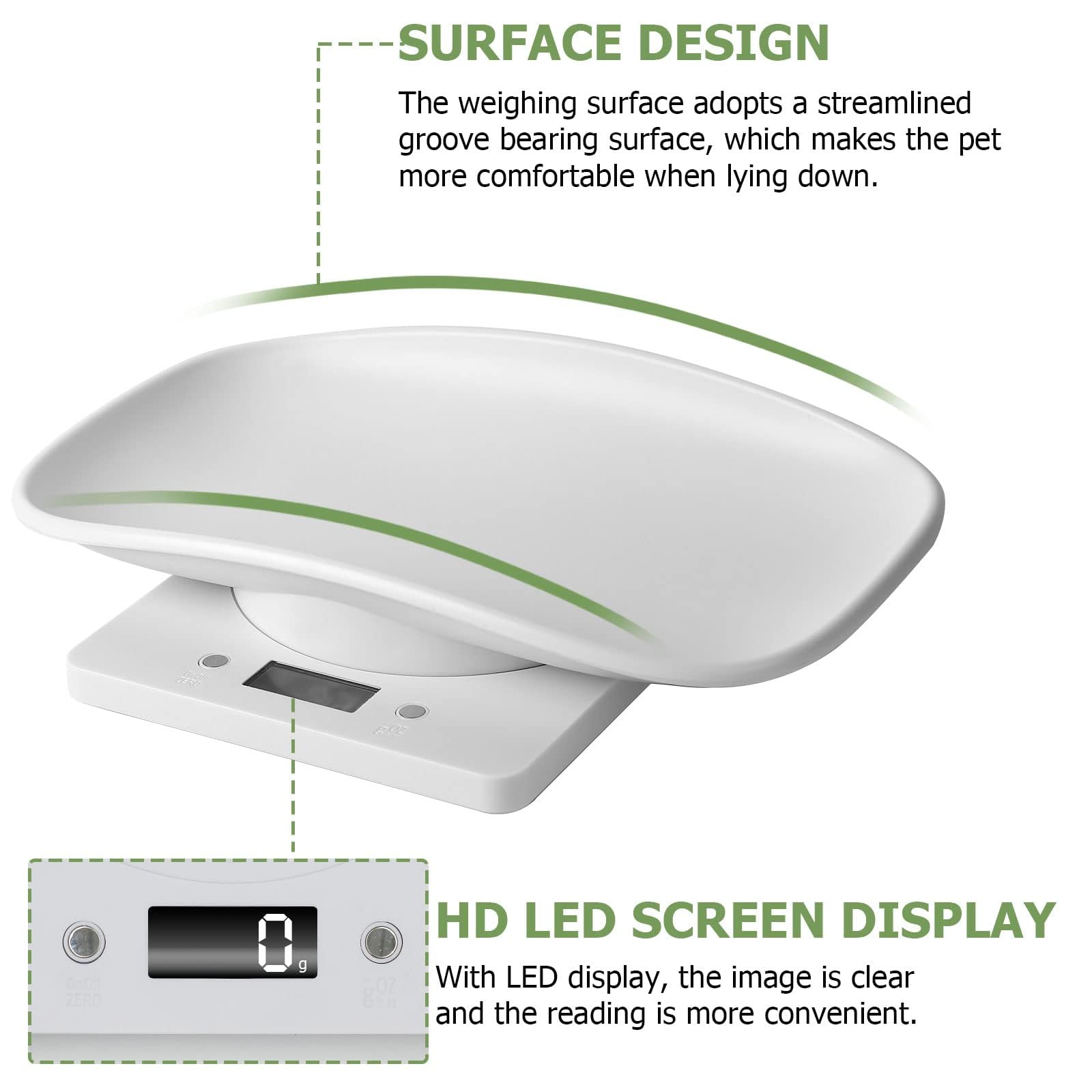 ๐พใIdeal for Weighing Cats and Smaller Dogsใ- This digital pet scale can measure weight (Max : 33lbs), the length of the tray is 11.5". This puppy scale is perfect for weighting newly born pets or little pets. NOT LARGE ENOUGH FOR ADULT CATS/DOGS.