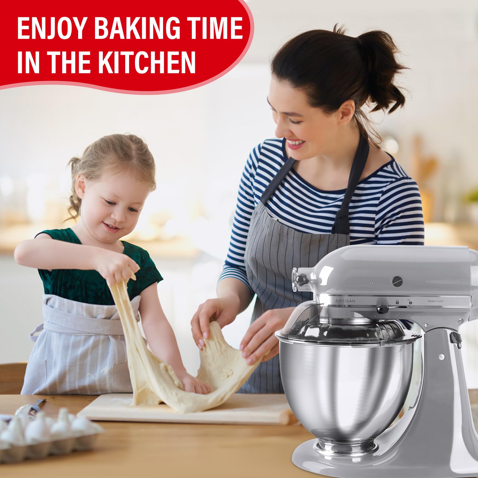 【Clean, Relaxing, and Enjoyable Cooking Experience】Wanyshapy features a brand new design with a large angle pouring chute that allows you to add a variety of ingredients with ease; the full wrap-around pouring shield and pouring chute dust cover perfectly retains the ingredients in the center of the mixing bowl, and the mixing will be more efficient and thorough, effectively preventing splashes and spills when mixing lightweight ingredients such as flour, and minimizing countertop messes