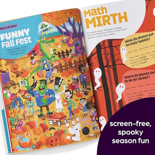Give kids the ultimate brain workout with the spookiest puzzles of all time! Solve more than 75 Halloween brain-benders—including our best Hidden Pictures puzzles, mazes, logic problems, and wordplay—and unleash your child’s inner genius! With 72 pages of tricks, treats and screen-free fun, brainPLAY Halloween puzzles is perfect for puzzling pros looking for new challenges. In this spook-tacular Halloween puzzle book, super solvers will: wind their way through a corn maze match eyeball cookies find not-so-scary things at a haunted house search for hidden objects at a candy factory and much more! While kids have a blast completing the puzzles, they’ll also build confidence, flex their creativity, and sharpen their critical thinking skills. And bonus: this Halloween activity book is packed with fresh, fun art and designs—a terrific spooky-season treat and solution for every “I’m bored” moment. Crafted by the puzzle people at Highlights, brainPLAY puzzle books are perfect for: kids ages 7+ who love Highlights puzzles and are ready for more of a challenge grown-ups who want to keep kids engaged, boost academic skills, and build self-confidence kids-at-heart, teens and adults who can’t get enough logic puzzles and love brainteasers with fun visuals