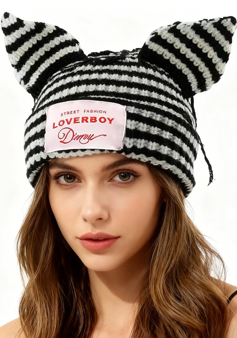 Unique Design: The cat ear hat featuring a trendy hand-crocheted inside-out look, adds a fun Y2K vibe to any outfit. A stylish and playful accessory that stands out from the crowd!