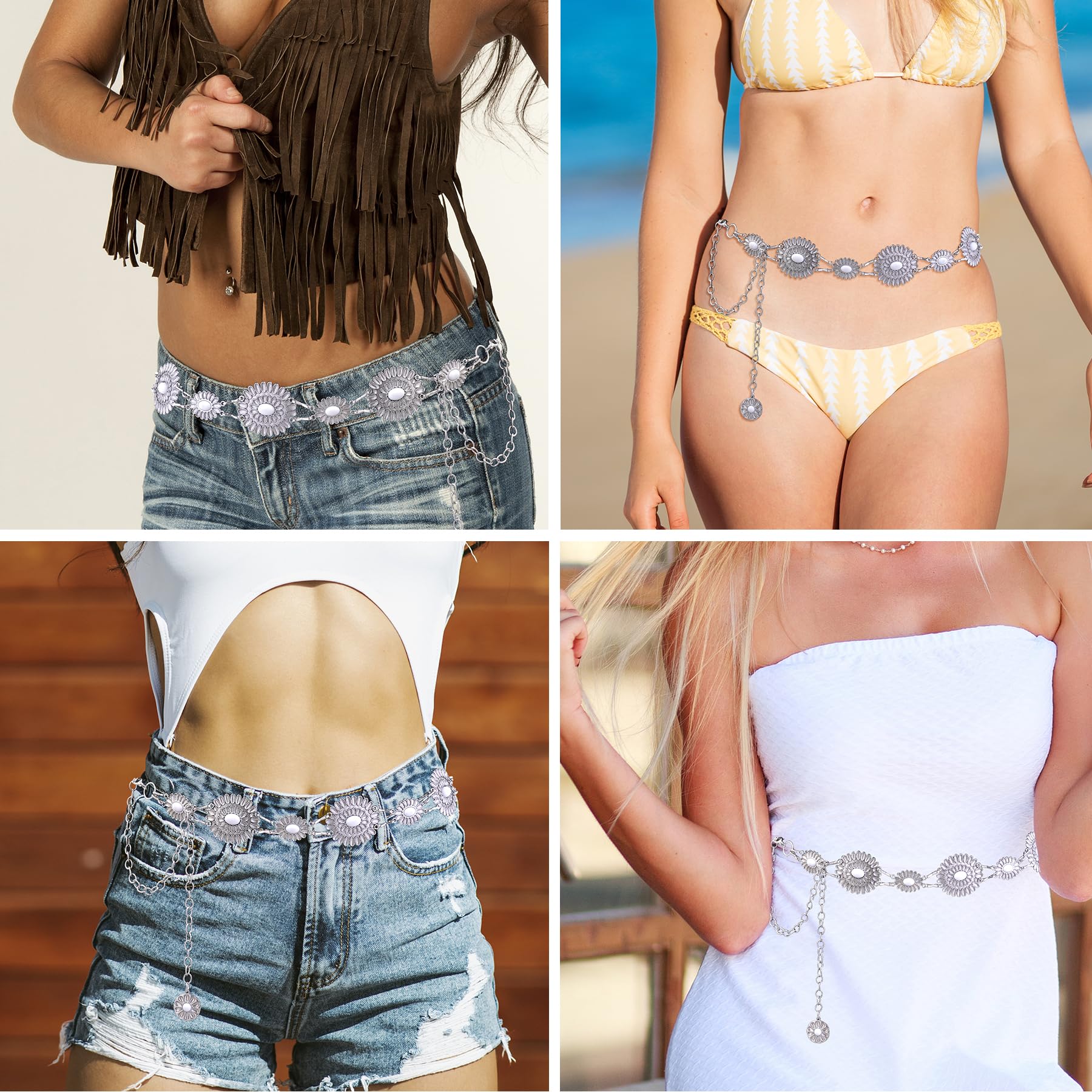 Women Oval Concho Western Cowgirl Waist Links Chain Belt Material: The women boho chain belts dresses jeans sweater belt is made of metal, durable and longevity, smooth and glossy surface, stylish and fashionable, not easy to fade or break, adjustable and comfortable to wear.