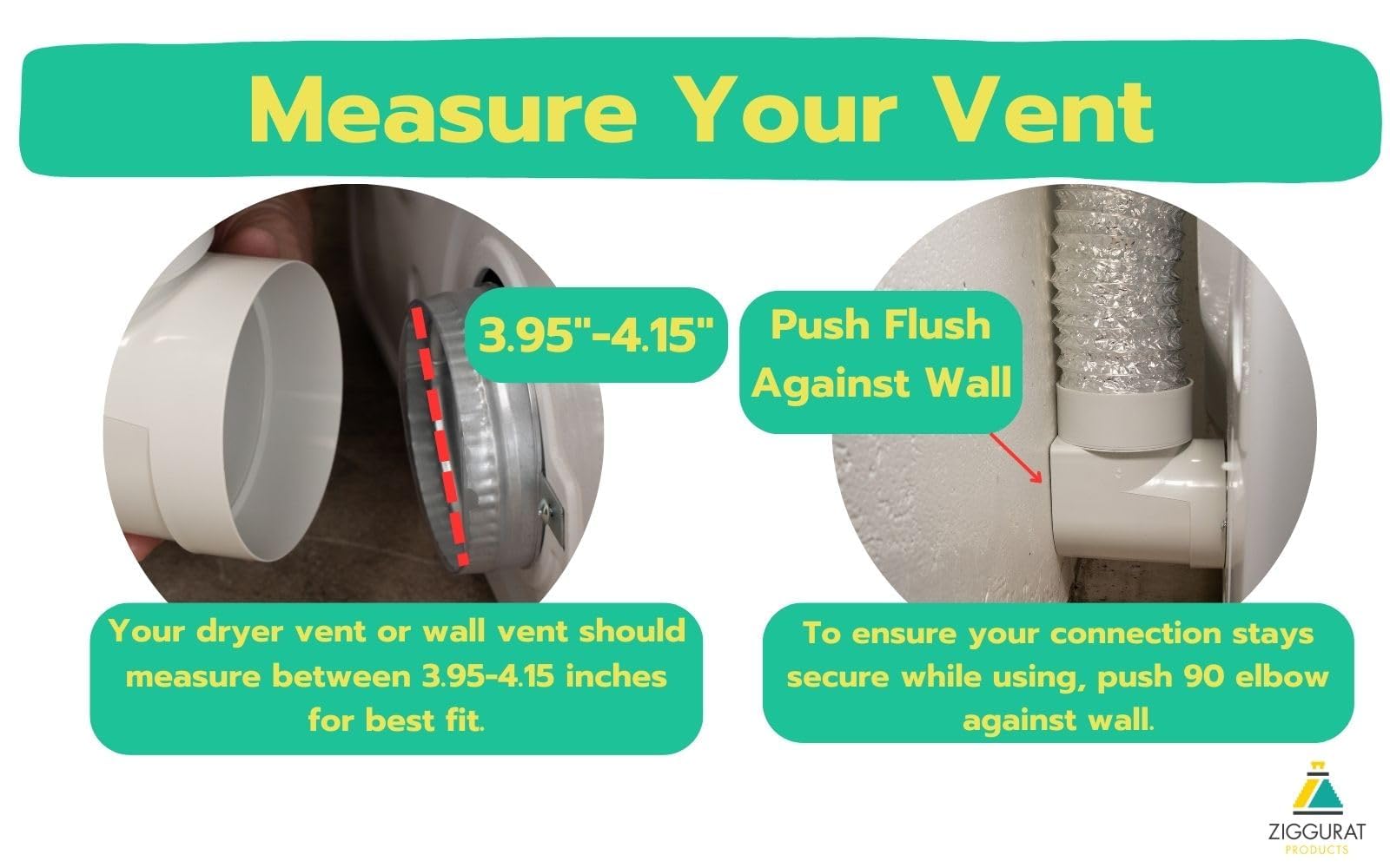 🟨 MEASURE BEFORE YOU BUY – Snap to Vent STV-90 is designed to fit dryer vents with diameters from 3.95" to 4.15". Measure your dryer vent to ensure a snug, secure fit before purchase.