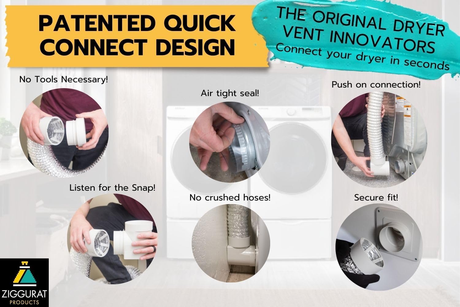 DIY Dryer Vent Connector Kit - Space Saving, Toolless Design with Airtight Seal - STV-90 by Ziggurat Products