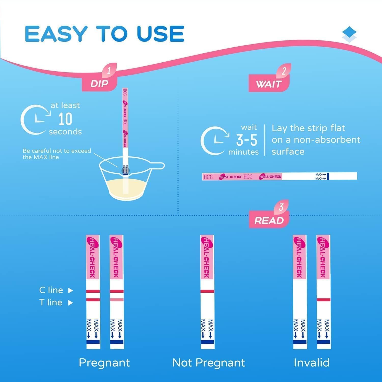 OVER 99% ACCURACY: Our pregnancy tests strips are tested by professional laboratories and are over 99% accurate, Levels of hCG as low as 25 mIU/ml can be detected at 3-5 minutes, and the HCG test strips are precise and give you the security you need