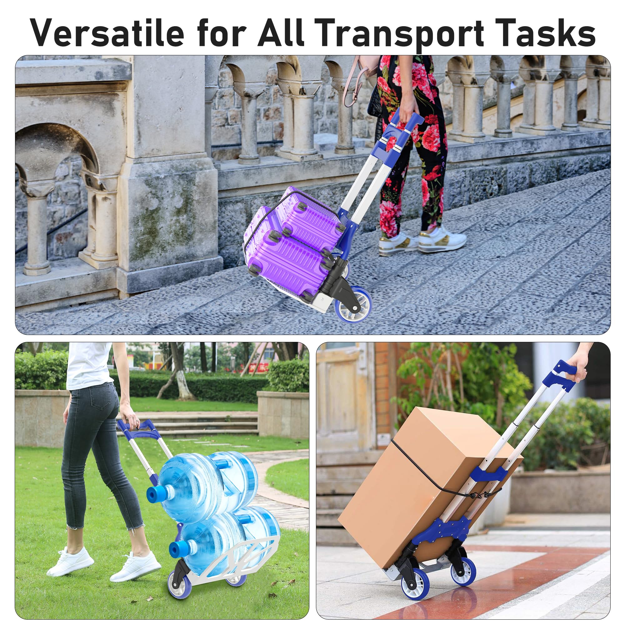 Multi-Scene Versatility for All Transport Tasks: Lightweight yet durable, this hand trucks is your go-to for home, office, shopping, and travel. Use it as a luggage cart, car seat carrier, or daily transport helper to effortlessly move boxes, luggage, groceries, and heavy loads. Easy to maneuver and lightweight, it’s a must-have for both daily chores and occasional heavy transport needs.