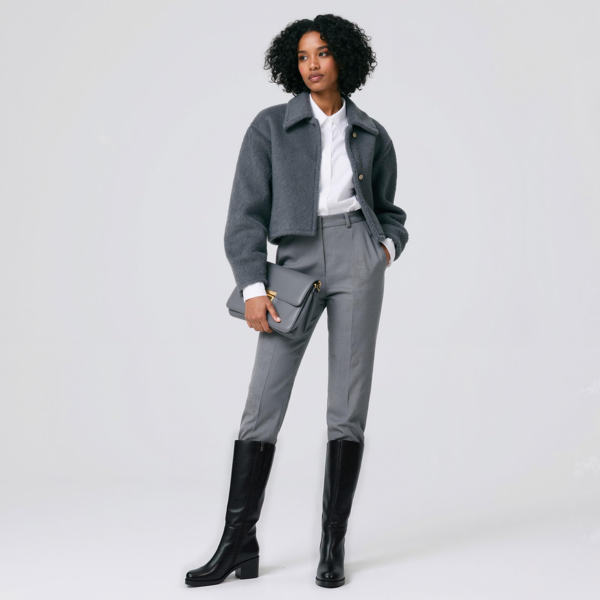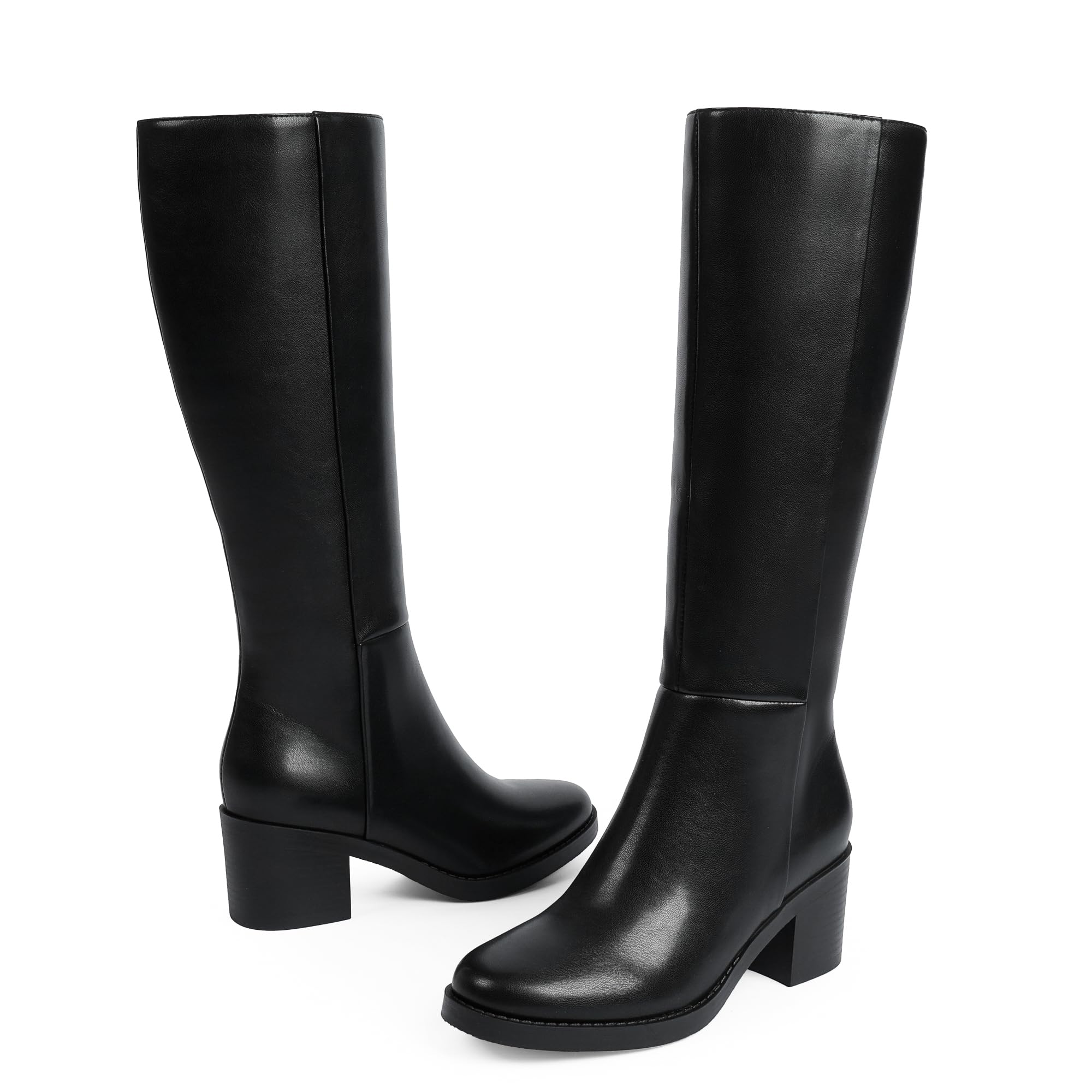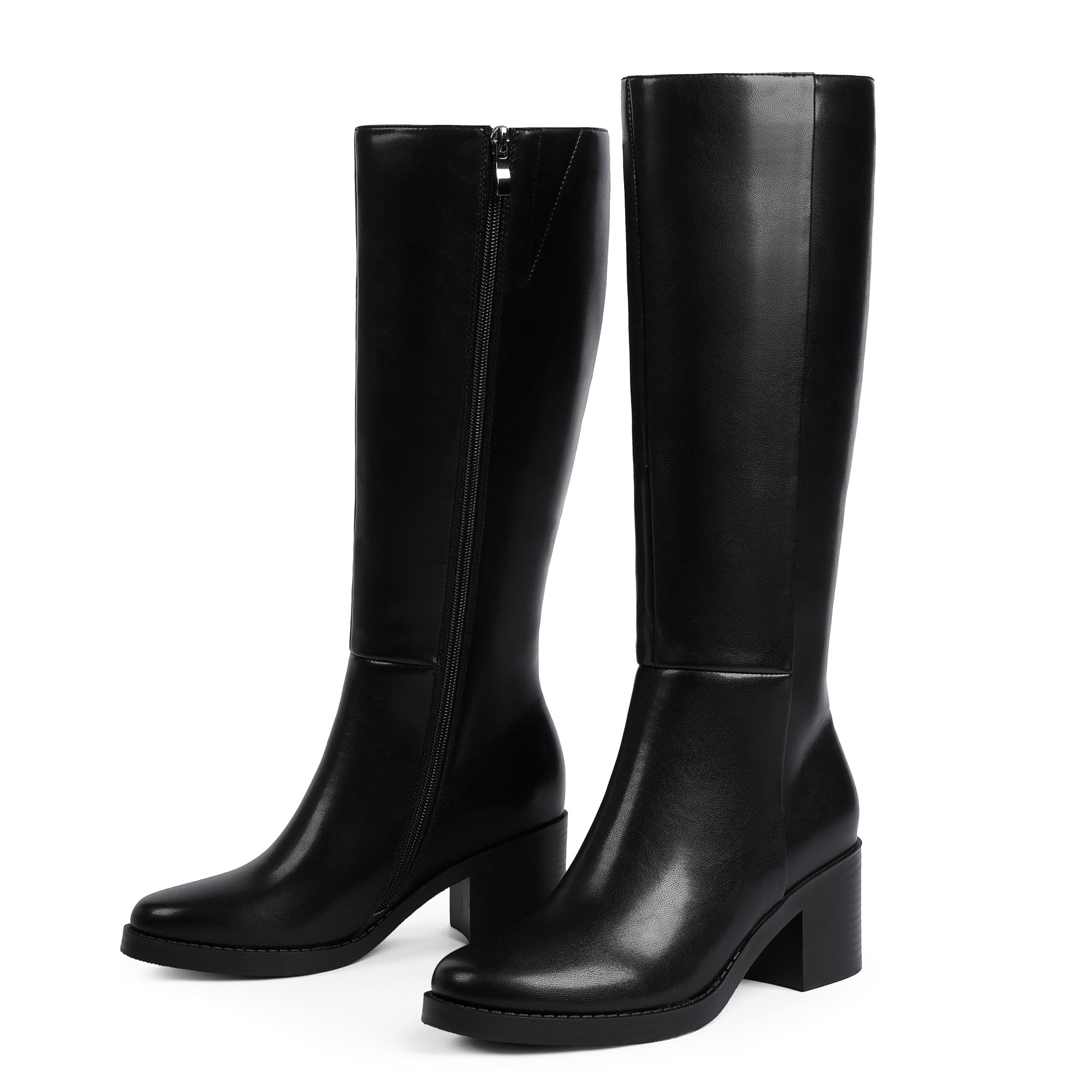 [DESIGN] Black knee high boots are designed with comfortable chunky low heel, round toe. This modern and bold style will elevate any casual or formal outfit.