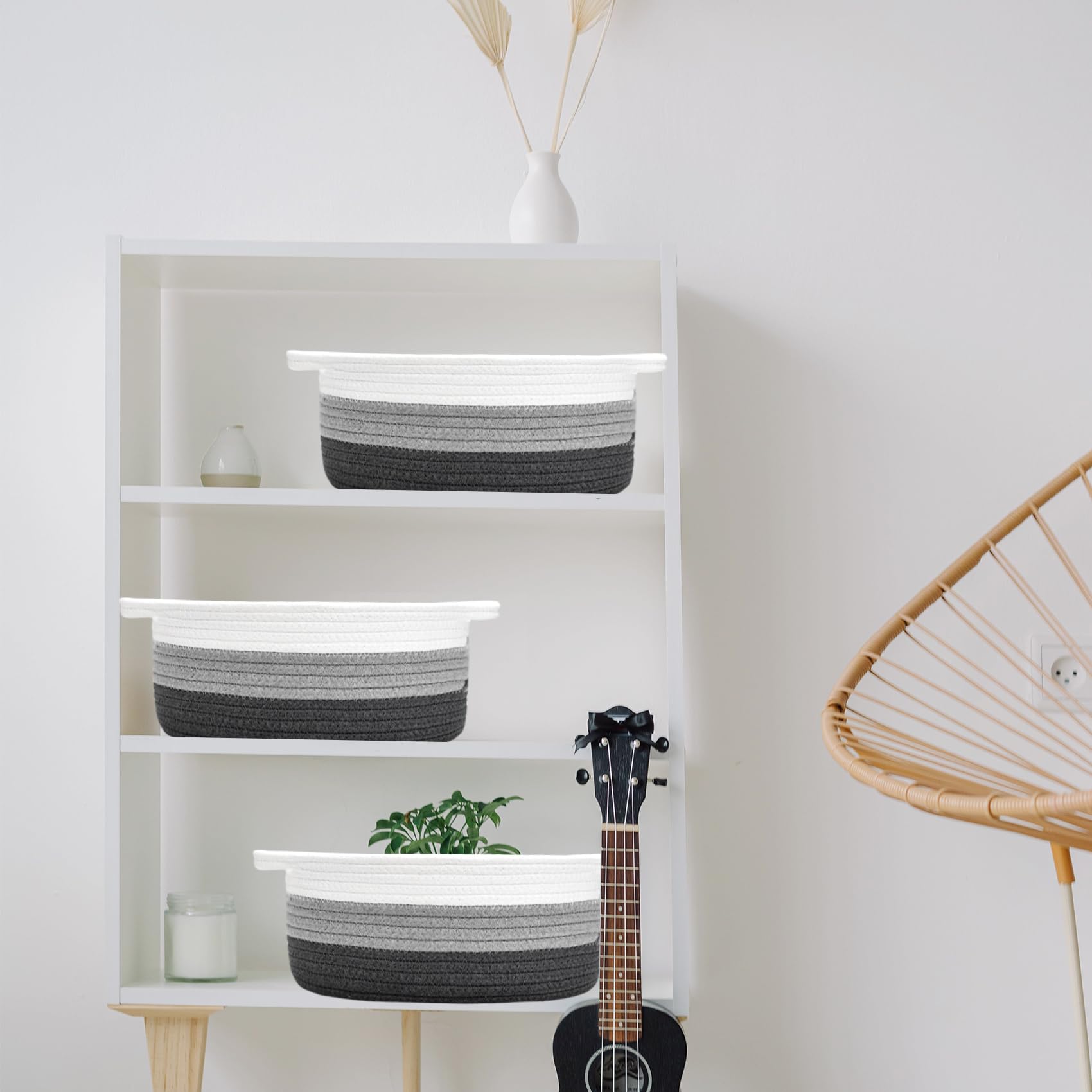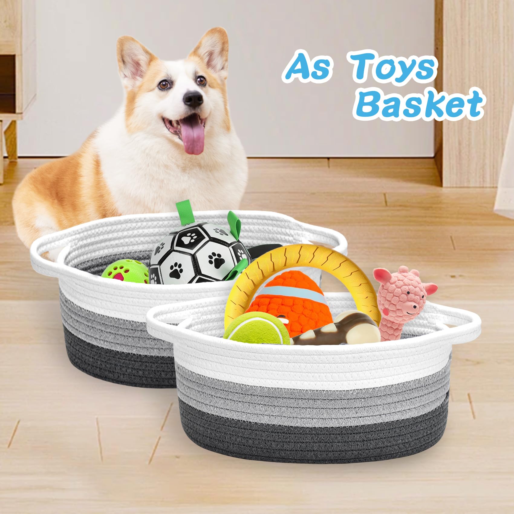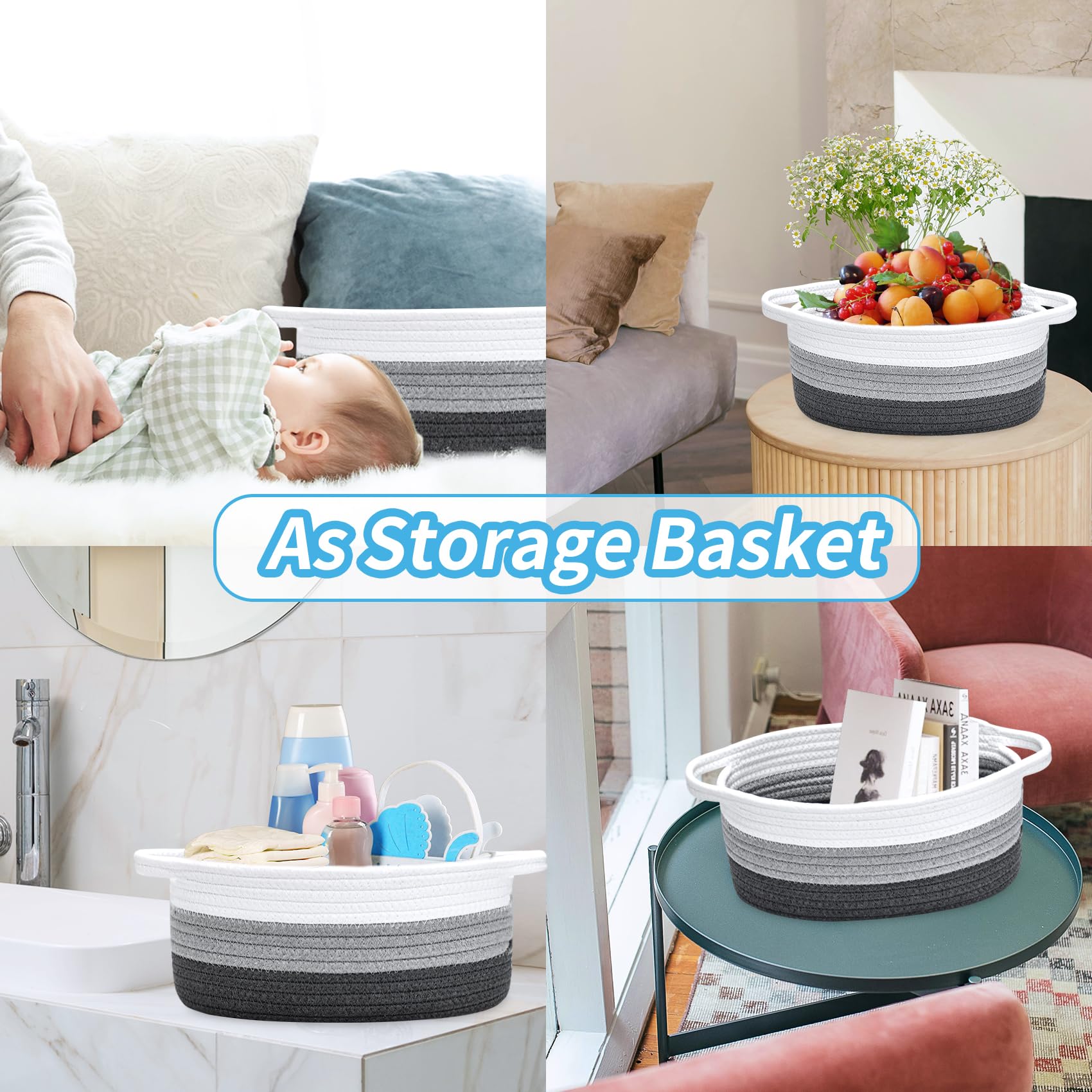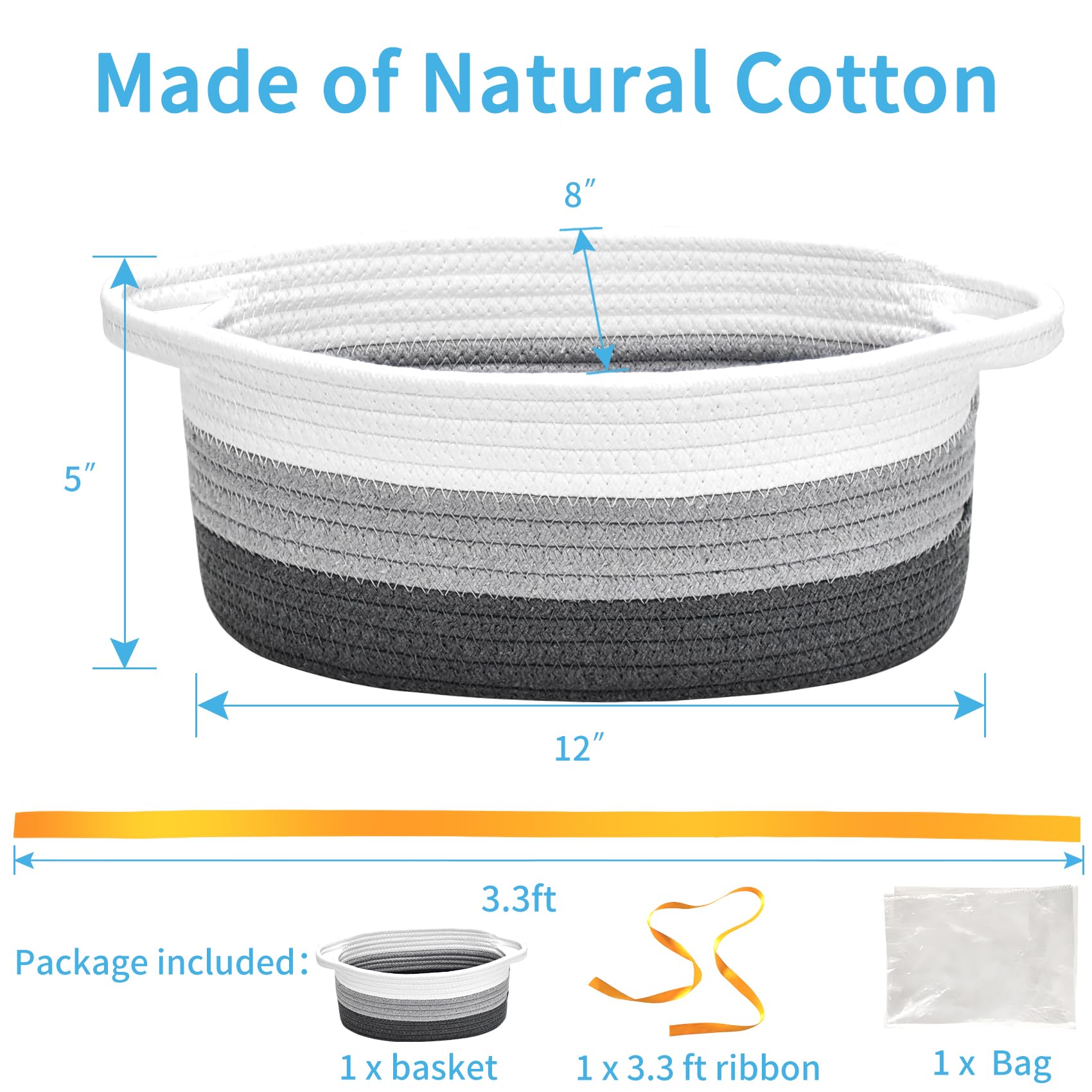 Made of durable cotton rope, natural, chemical-free, skin-friendly, woven basket safe for baby and pets, scratch-free to floors or walls