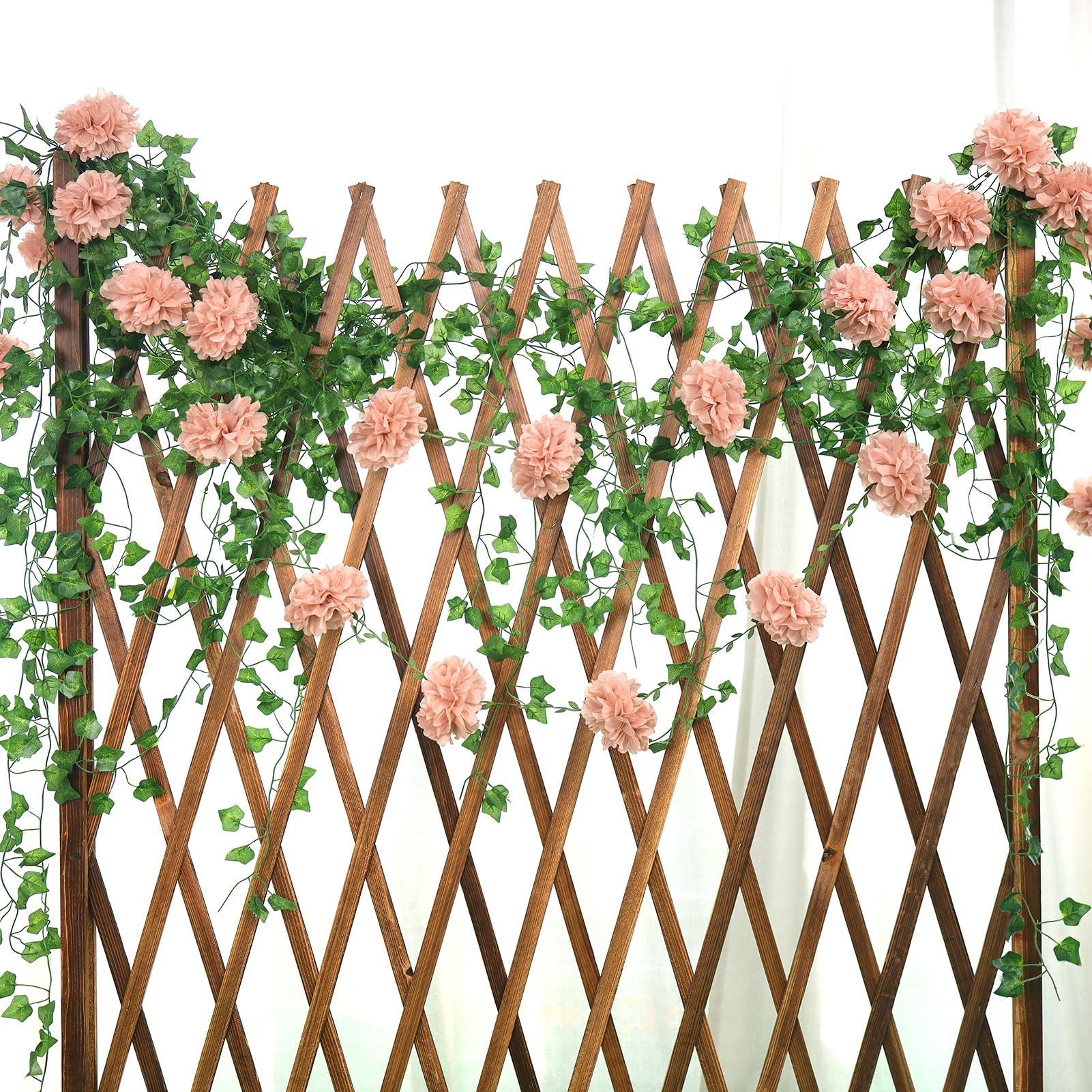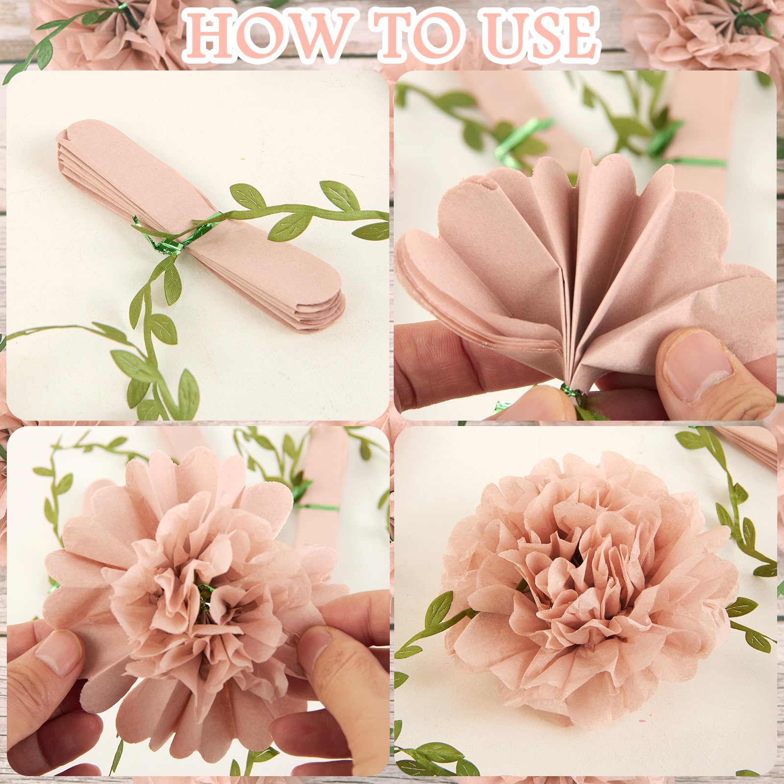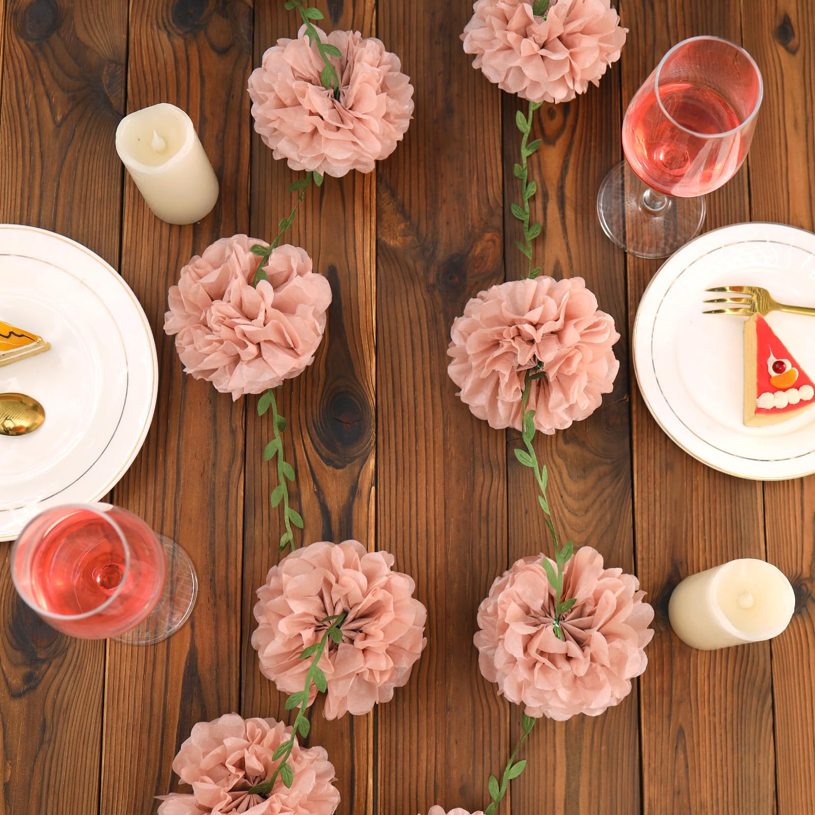 Nature-Inspired Elegance – Unlike ordinary pompoms, ours feature green leaf strings, adding a fresh, botanical touch to your décor. The combination of soft tissue pompoms and greenery creates a charming and eye-catching display.