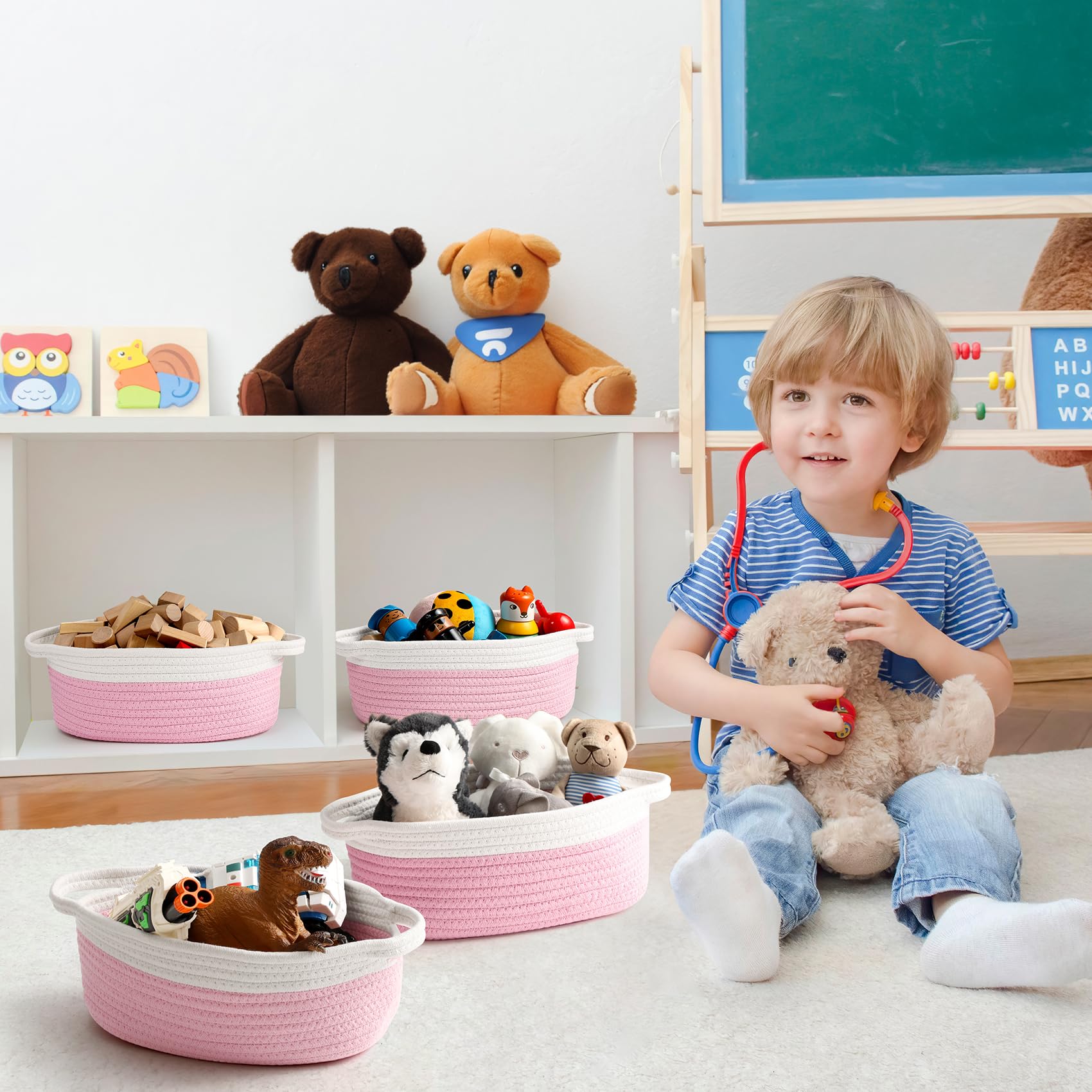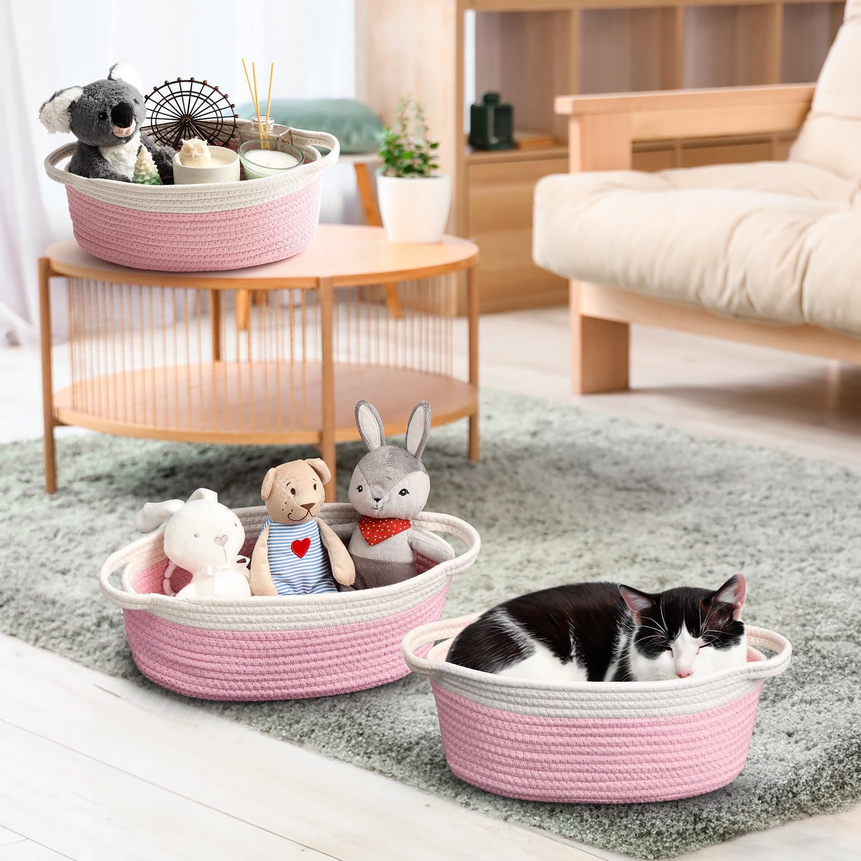 Organic Cotton Woven: Our small woven basket is made of 100% organic cotton, 2 Pack Pink all 12"x 8"x 5", this makes the material incredibly soft and gentle. The natural cotton rope used in weaving is free of harsh chemicals, making it a reassuring choice for families with young ones.
