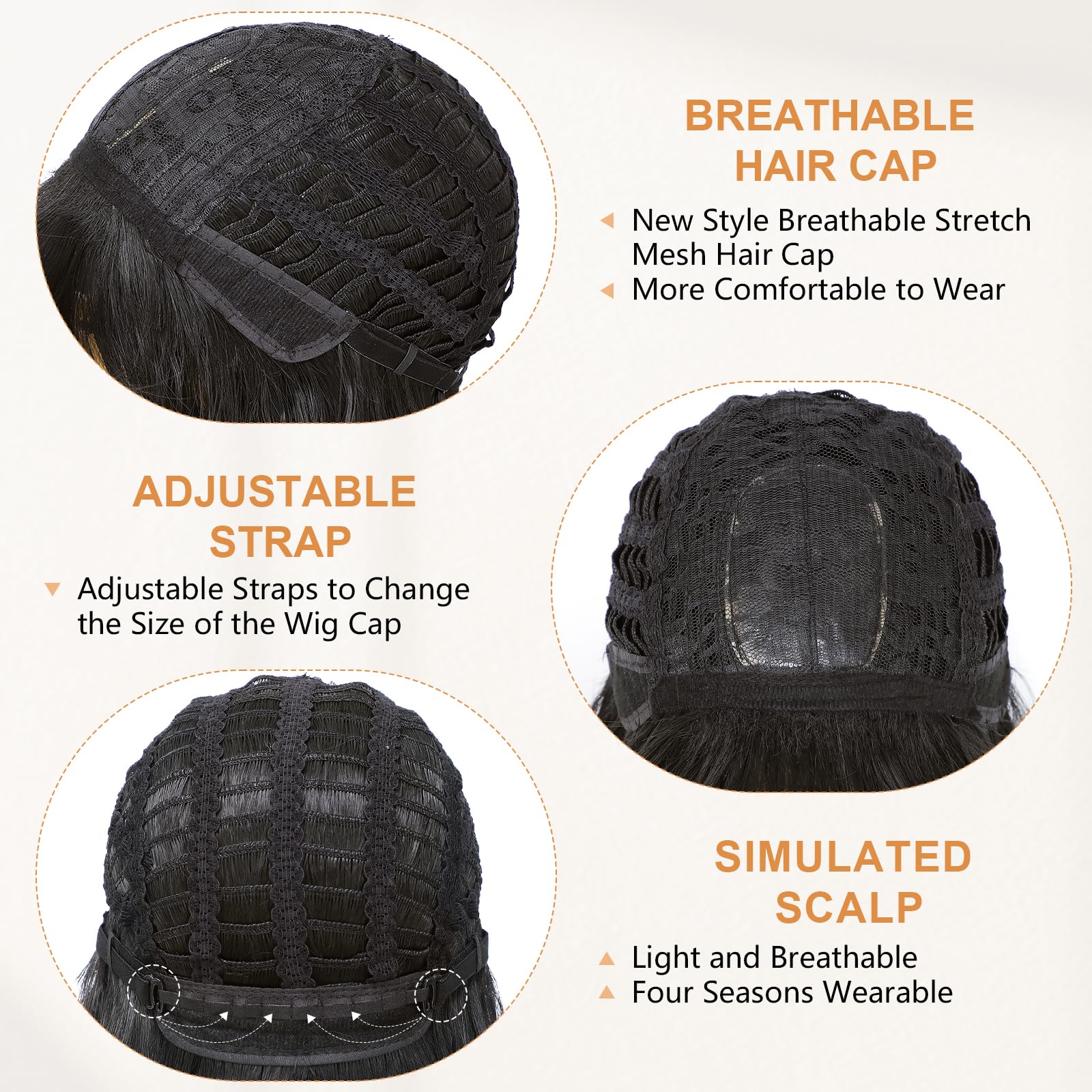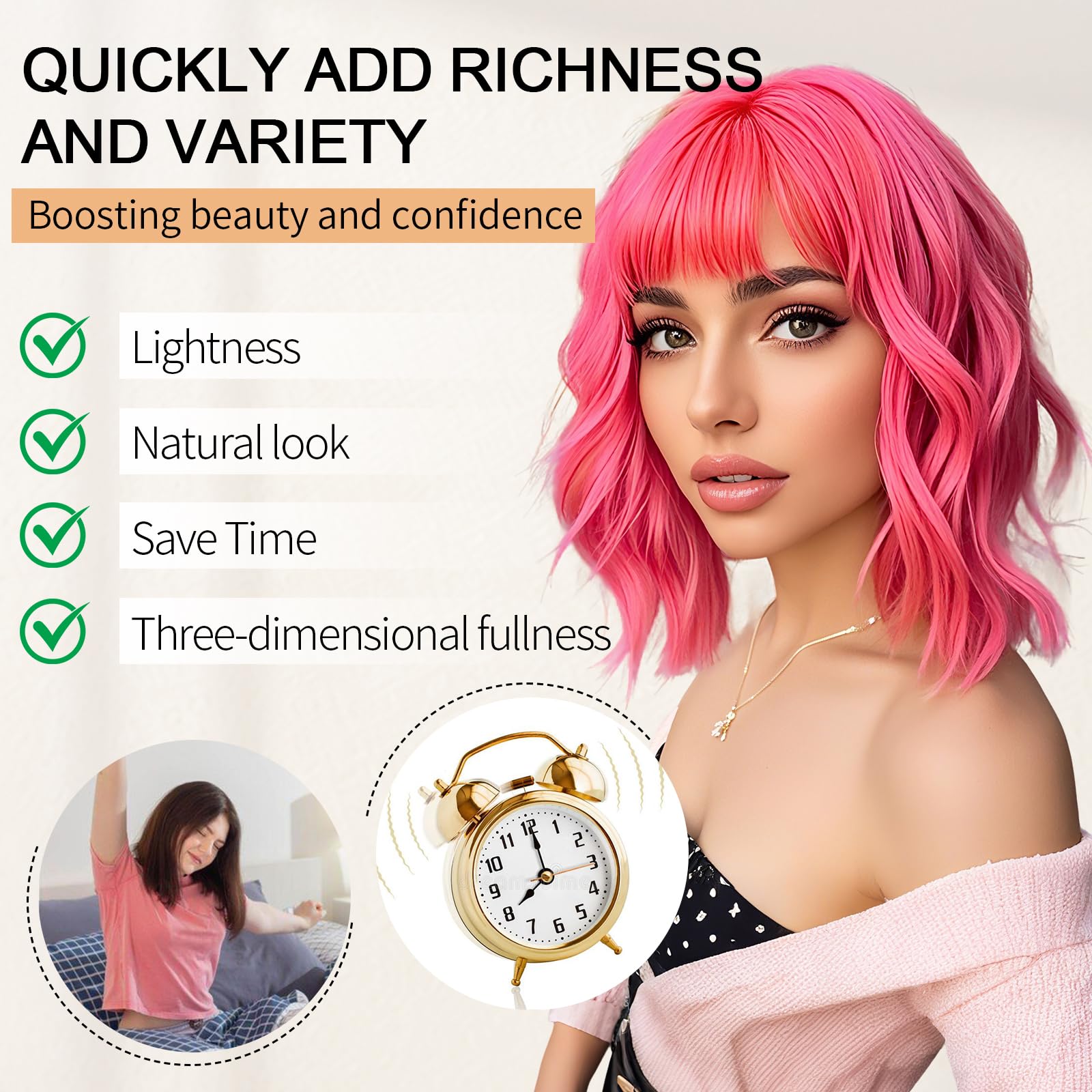 【Unique Bob Wavy Wig Style】:Short Bob Wigs with Bangs,looks more natural and fluffy,Medium Length Loose Wavy Wigs.Hair Bang:5inch,can be cut according to your face.
