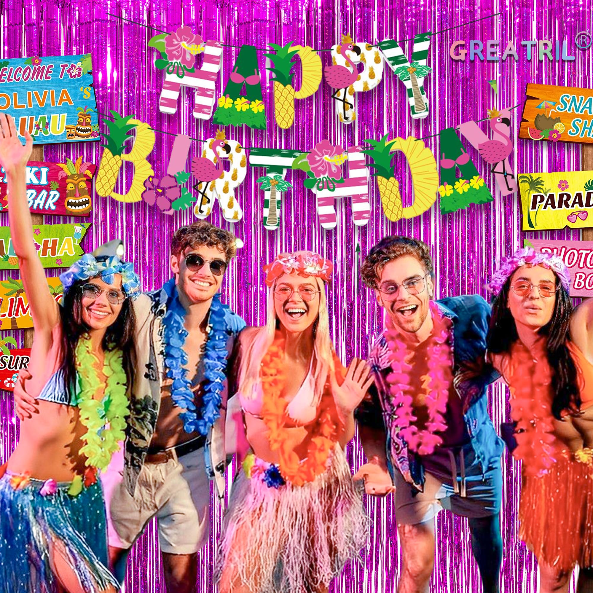 GREATRIL 2-packs magenta foil fringe curtains. The size of each foil fringe curtain is 8.2 ft x 3.2 ft. You can cut this hot pink tinsel curtain according to your needs.