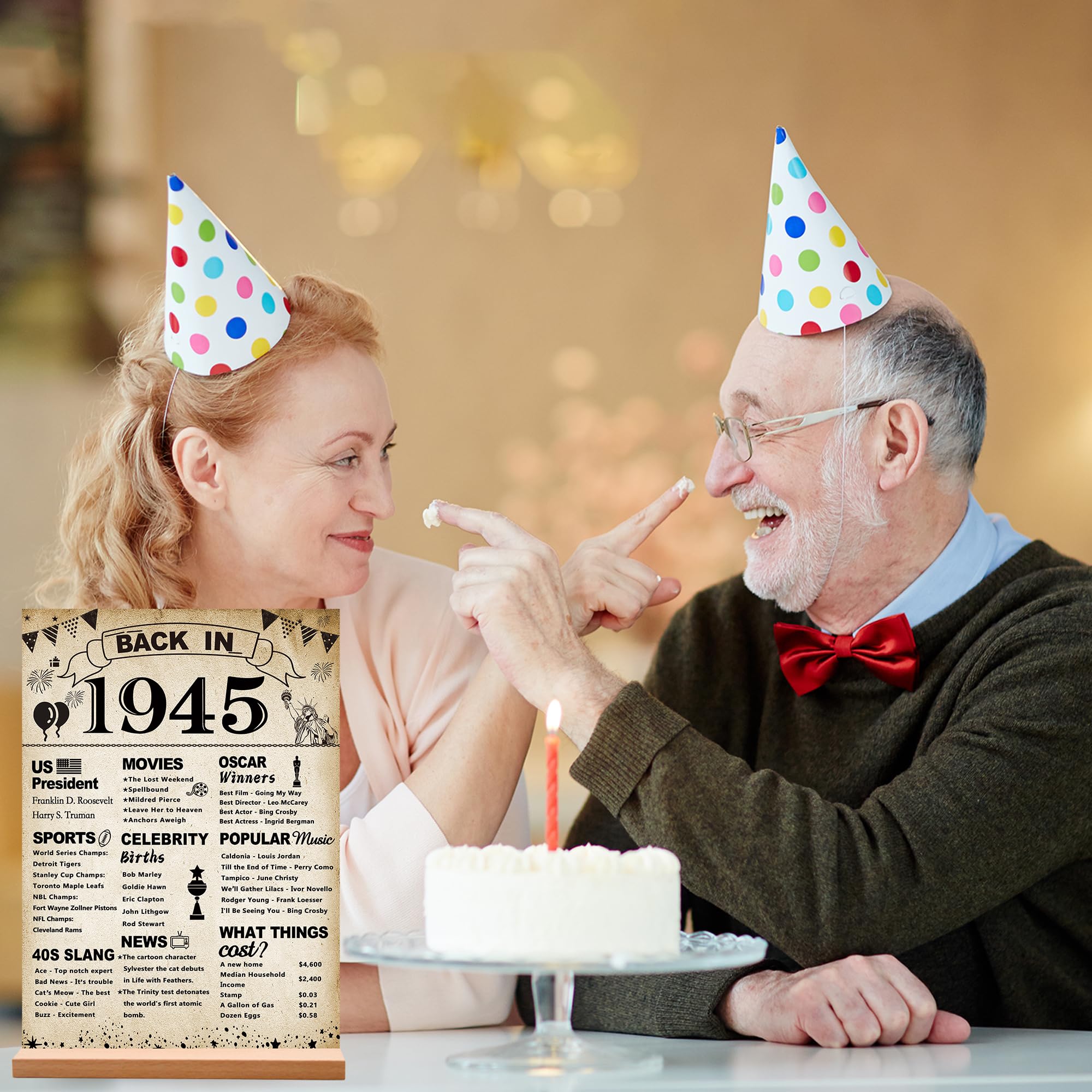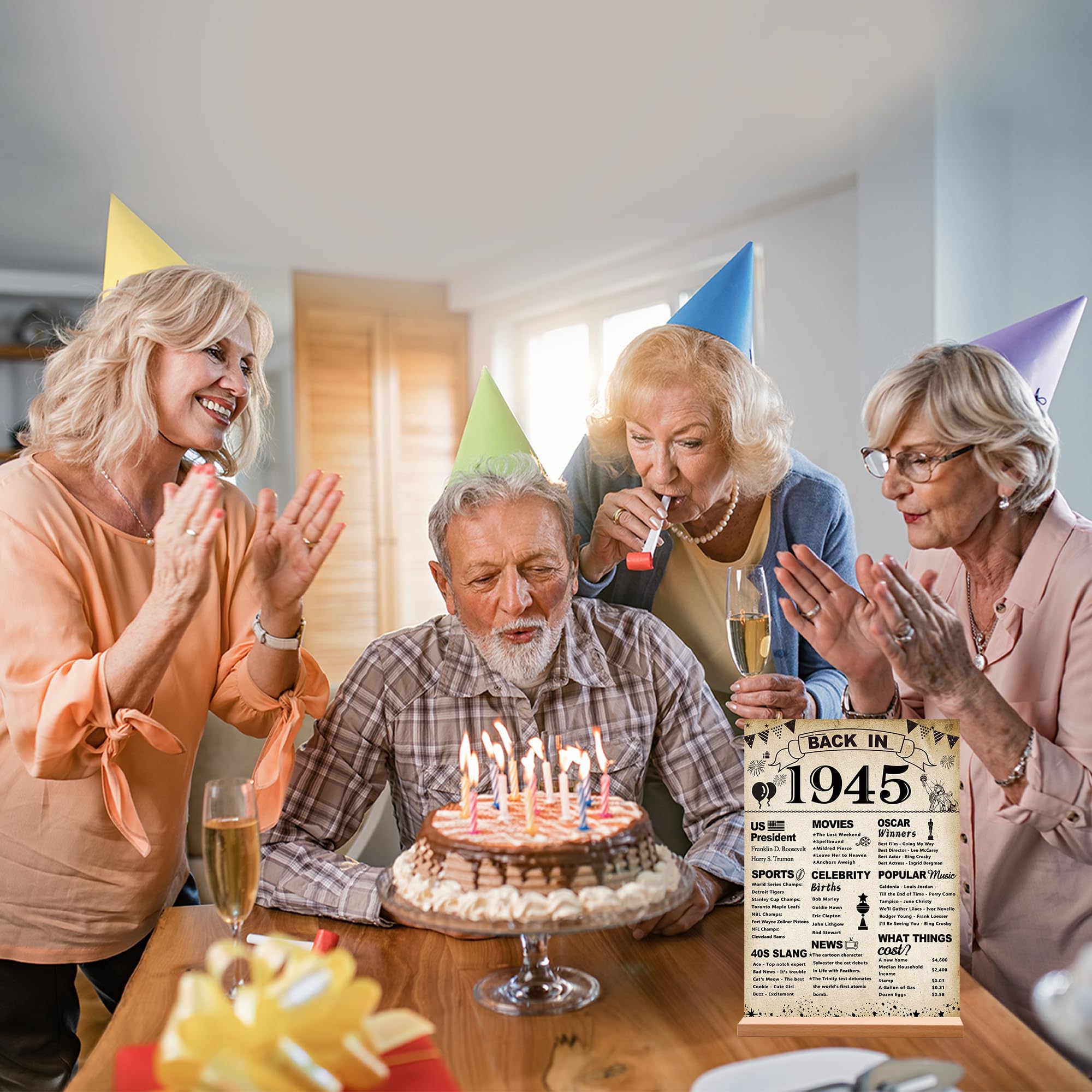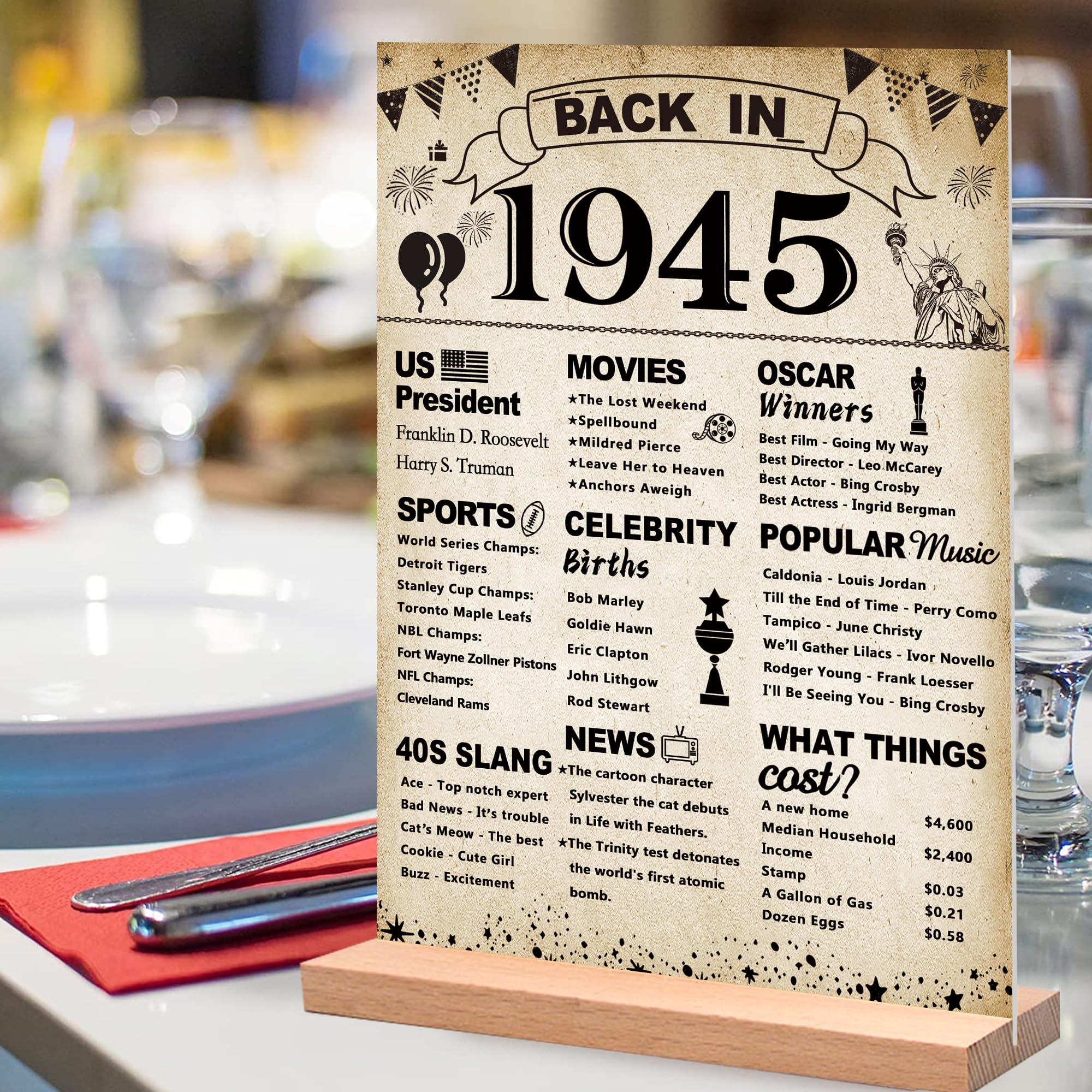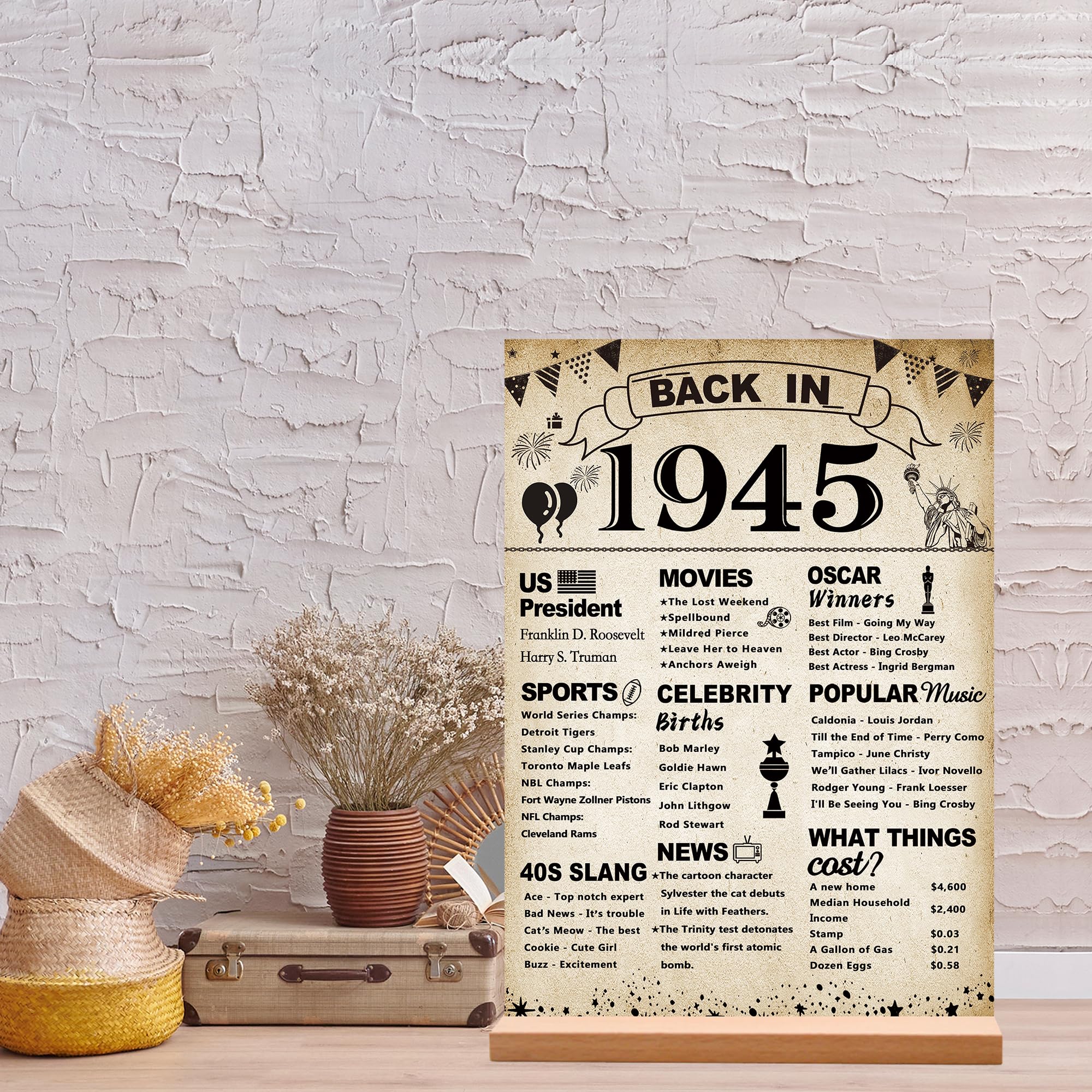 【Wide Application】 - Decorating your home and party with our vintage 1945 table centerpieces will be a big hit at your 80th birthday party. It is easy to match other party supplies such as anniversary parties, creating a warm vibe for your party. It is also a unique personalized acrylic sign holder that is the perfect present for 80-year-old men and women born in 1945.