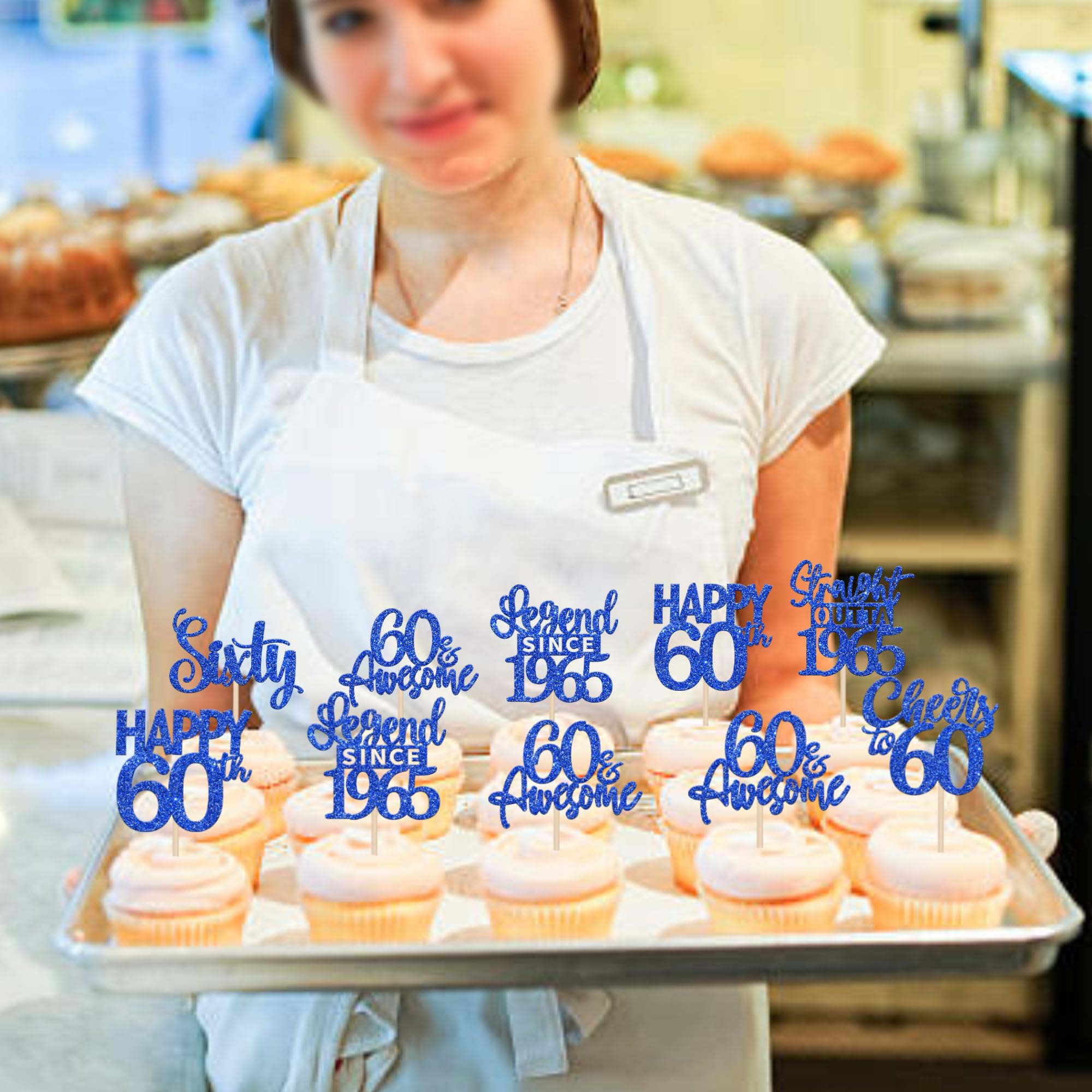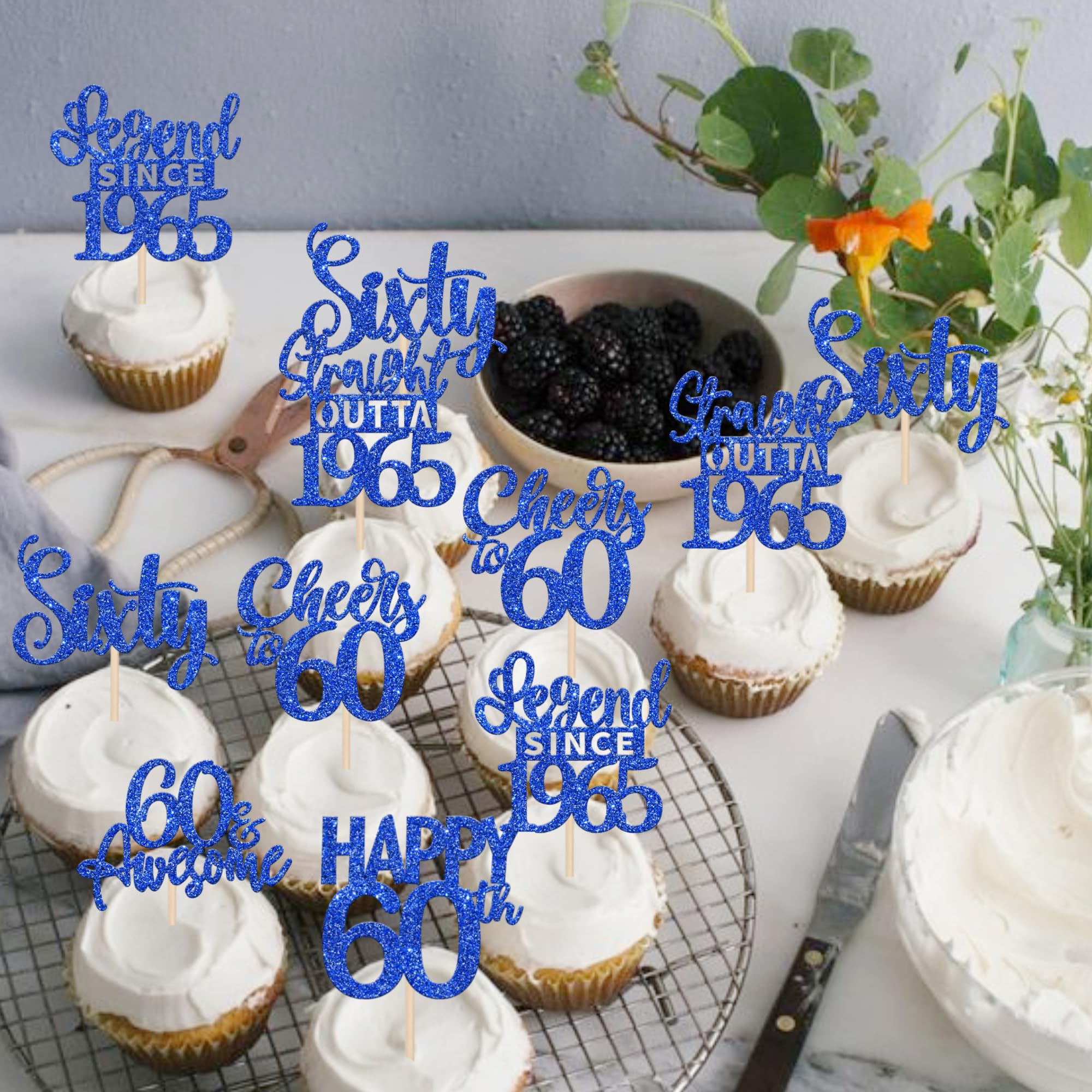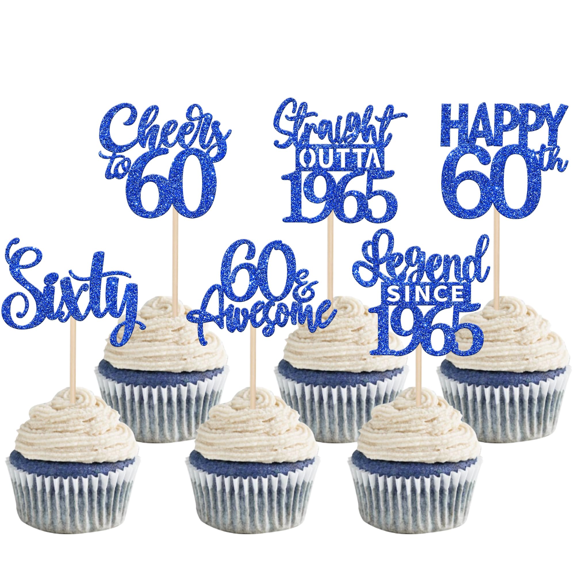 24PCS Happy 60th Birthday Cupcake Toppers Sixty Straight Outta 1965 Cupcake Picks Cheers to 60 Birthday Decorations Lengend Since 1965 Cupcake Decorations for 60th Birthday Anniversary Party Cake Decorations Supplies Perfect for legend since 1965 theme party, 60th anniversary theme party,cheers to 60 years theme party, 60 awesome theme party cupcake decorations supplies. Pack of 24 pcs,4 pcs of each design. The size is 2.9*4.5/ 2.4*4.5/ 2.7*4.5/ 2.4*4.7/ 2.3*3.9/ 2.4*4.7 inch ( with stick ) Made of high quality paper card stock,thick and sturdy. These straight outta 1965 cupcake toppers are one side glitter, another side is white, and they are intended for decoration only, please do not put them in oven or microwave. If the item you received has any defects, please contact us immediately.we will deal with it within 24 hours.