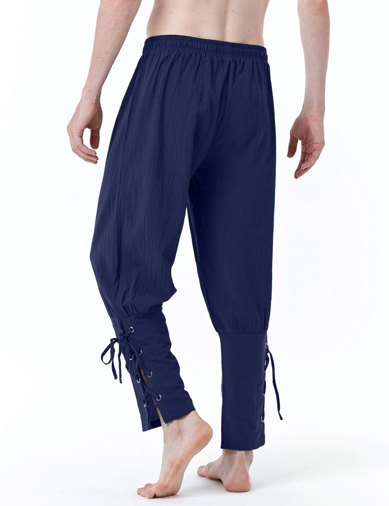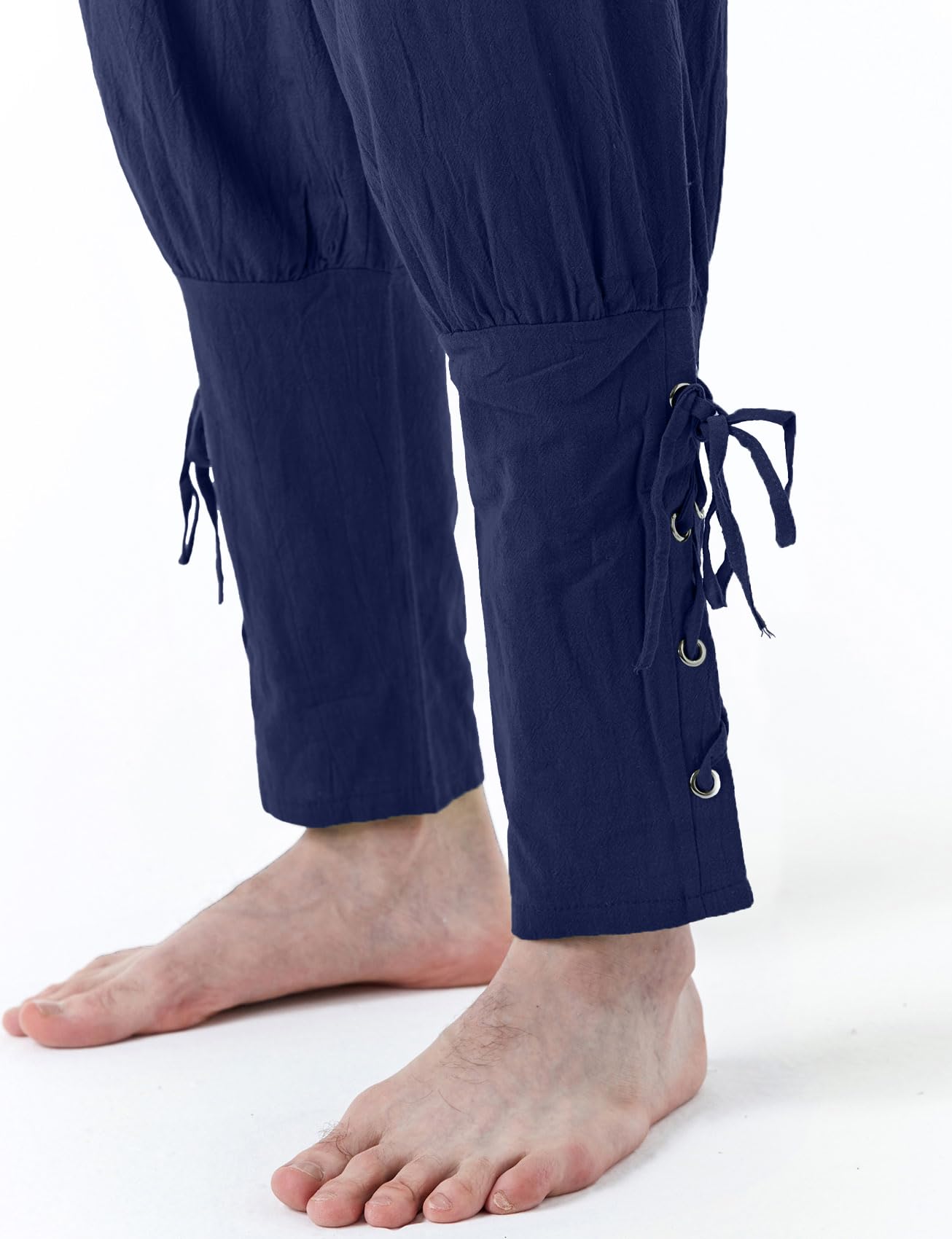 Design Concept: Cosplay costume for renaissance,pirate,viking,medieval,knight,halloween / Retro ankle lace up trousers / Regular fit / Adjustable drawstring waistband to fit a variety of body shapes