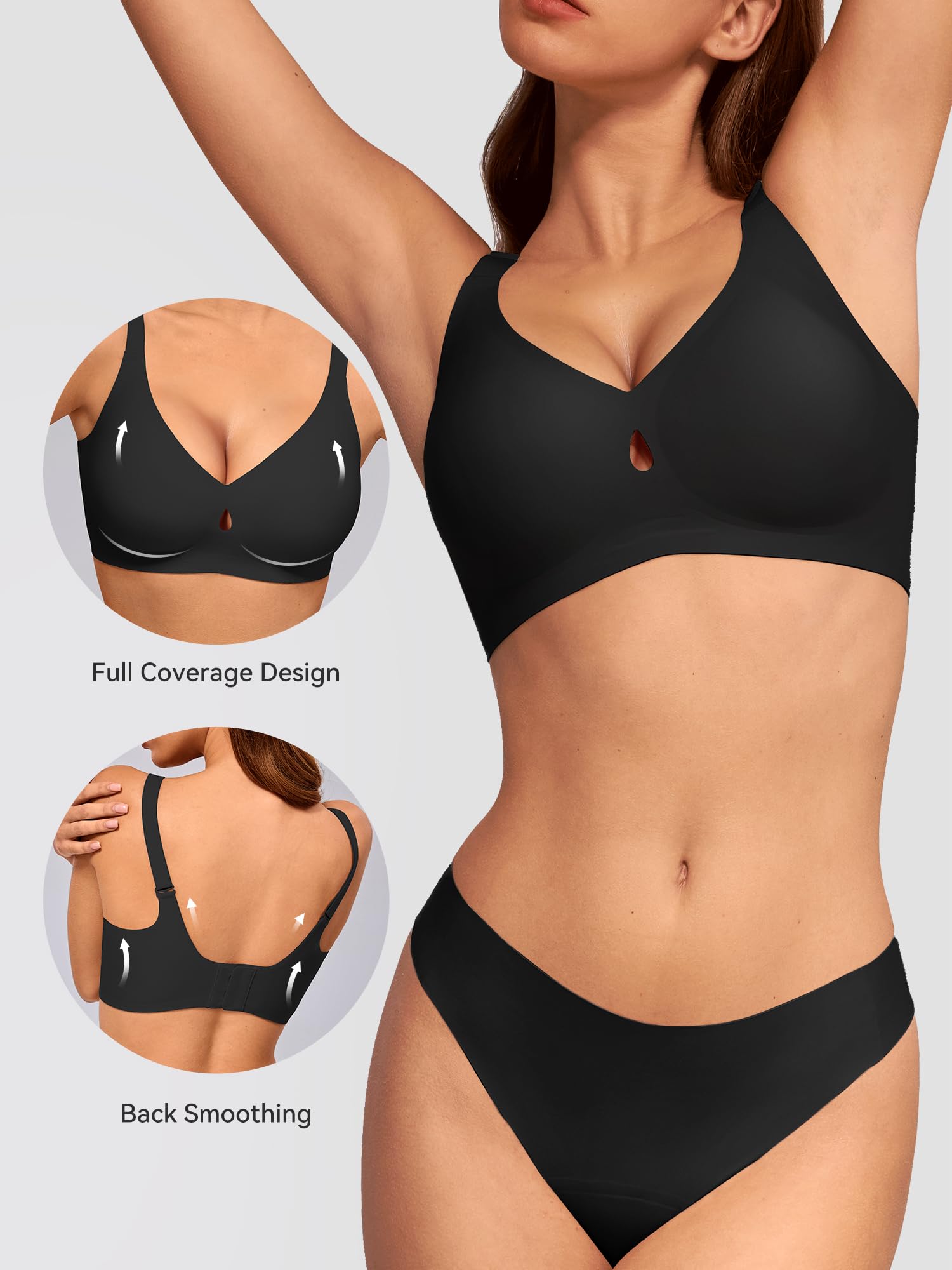 SEAMLESS BRAS WITH SUPPORT AND LIFT: These plus size bras for women provide full coverage, support, and lift. The V-neck design accentuates the bust line and the low-cut design shows charming curves. The teardrop cutout at the center keeps you cool and comfortable 24 hours a day. This women's everyday t-shirt bra for women is lightweight, invisible, and non-see-through, which fits your breasts perfectly and gives you a smooth look under your clothes.