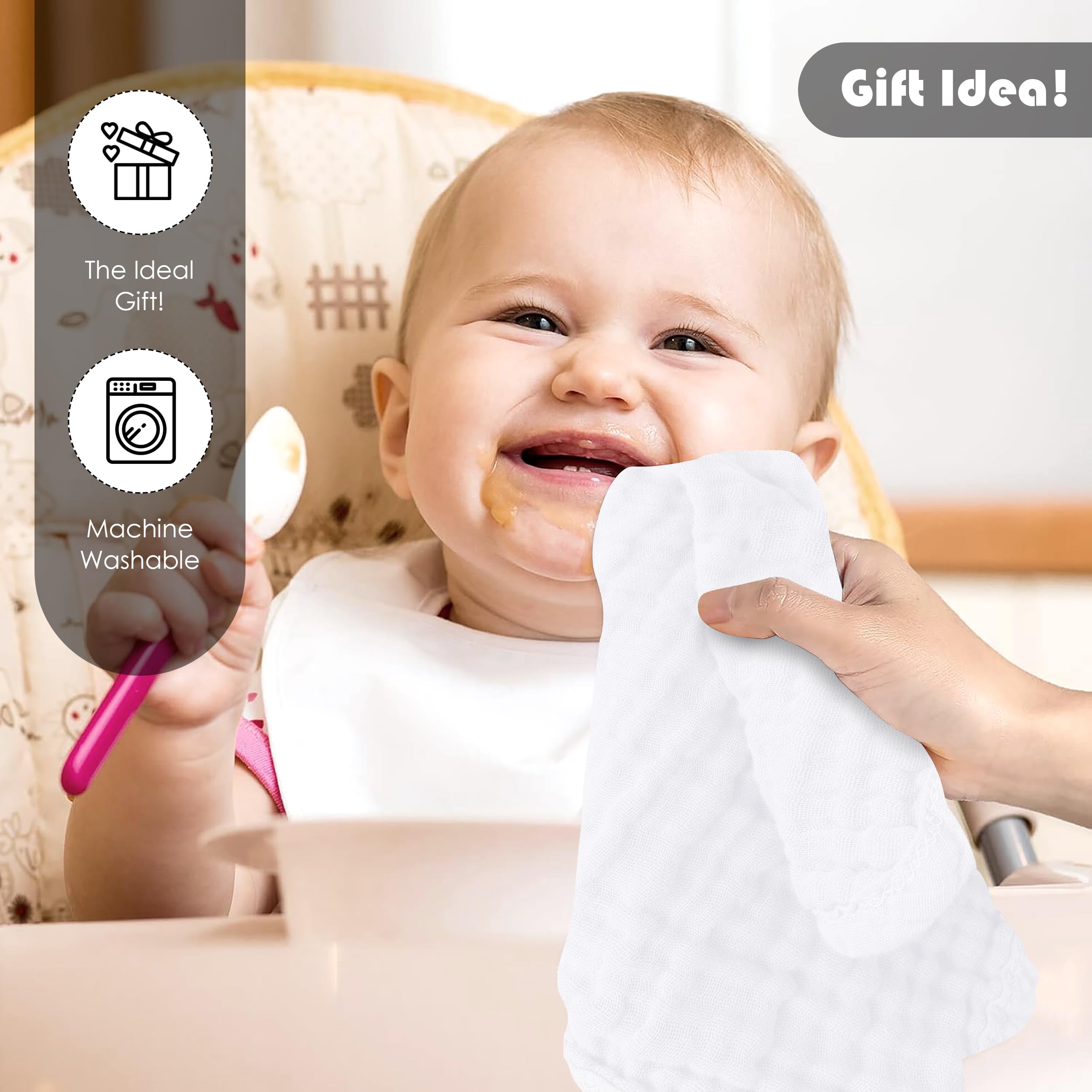 Versatile and Practical: Our washcloths go beyond bath time and can be used as burp cloths, nursing covers, face towels, and more. Their convenient size makes them ideal for on-the-go use, providing practicality and versatility for all your baby care needs. Elevate your baby care routine with our versatile and luxurious baby muslin washcloths.