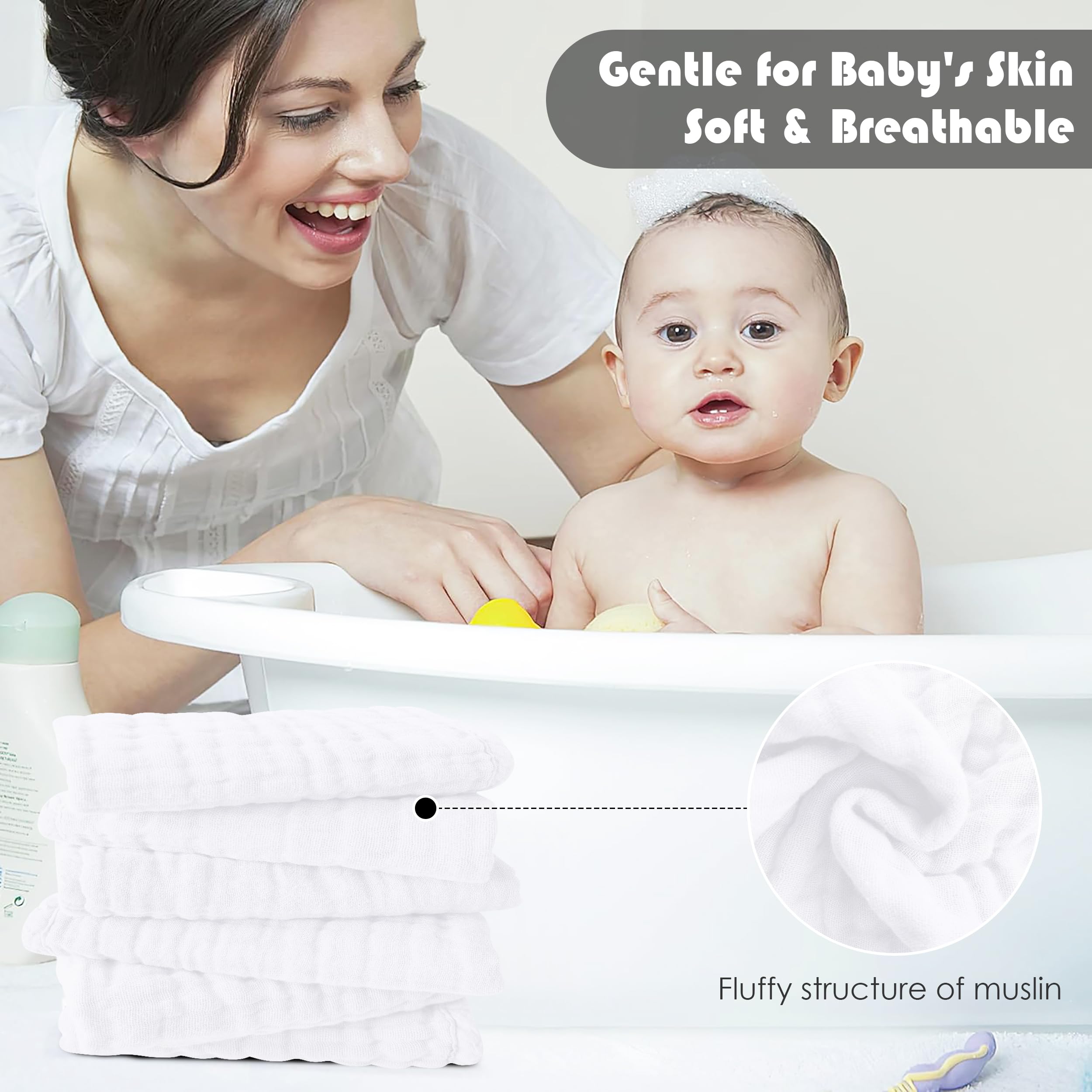 Ultra-Soft and Gentle: Our baby muslin washcloths are made from 100% cotton and feature a super soft touch for your baby's delicate skin. They are perfect for bath time and provide ultimate comfort and care.