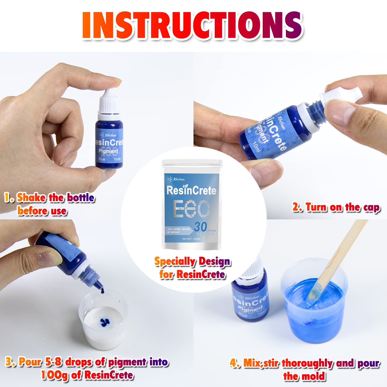 Easy to usem & Safe: ResinCrete pigment incorporate into ResinCrete mixtures, ensuring consistent and reliable results every time. Non-toxic, odorless, and skin-safe, making them ideal for both professional and DIY applications.