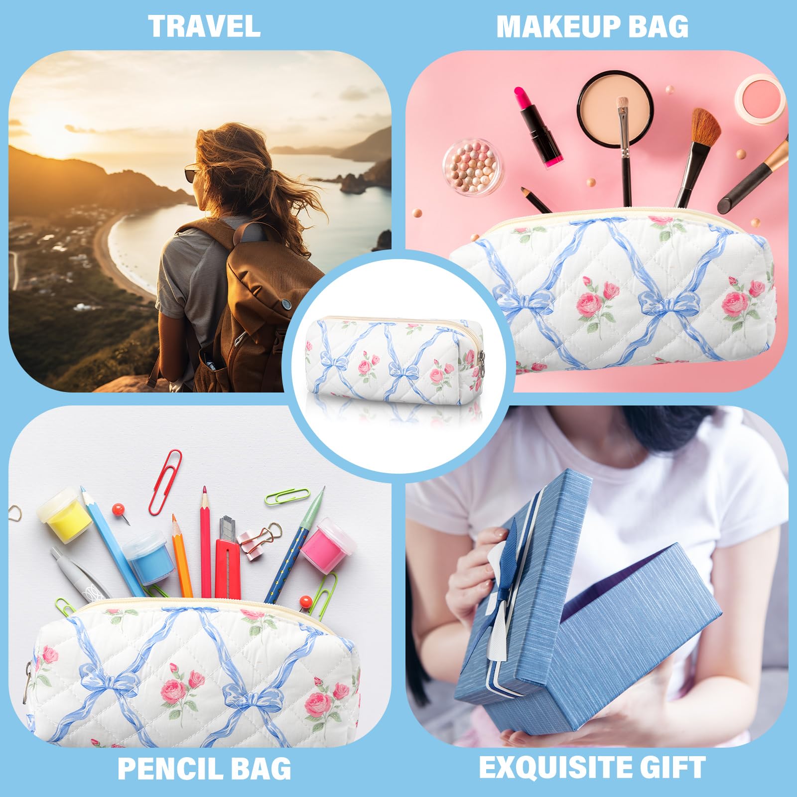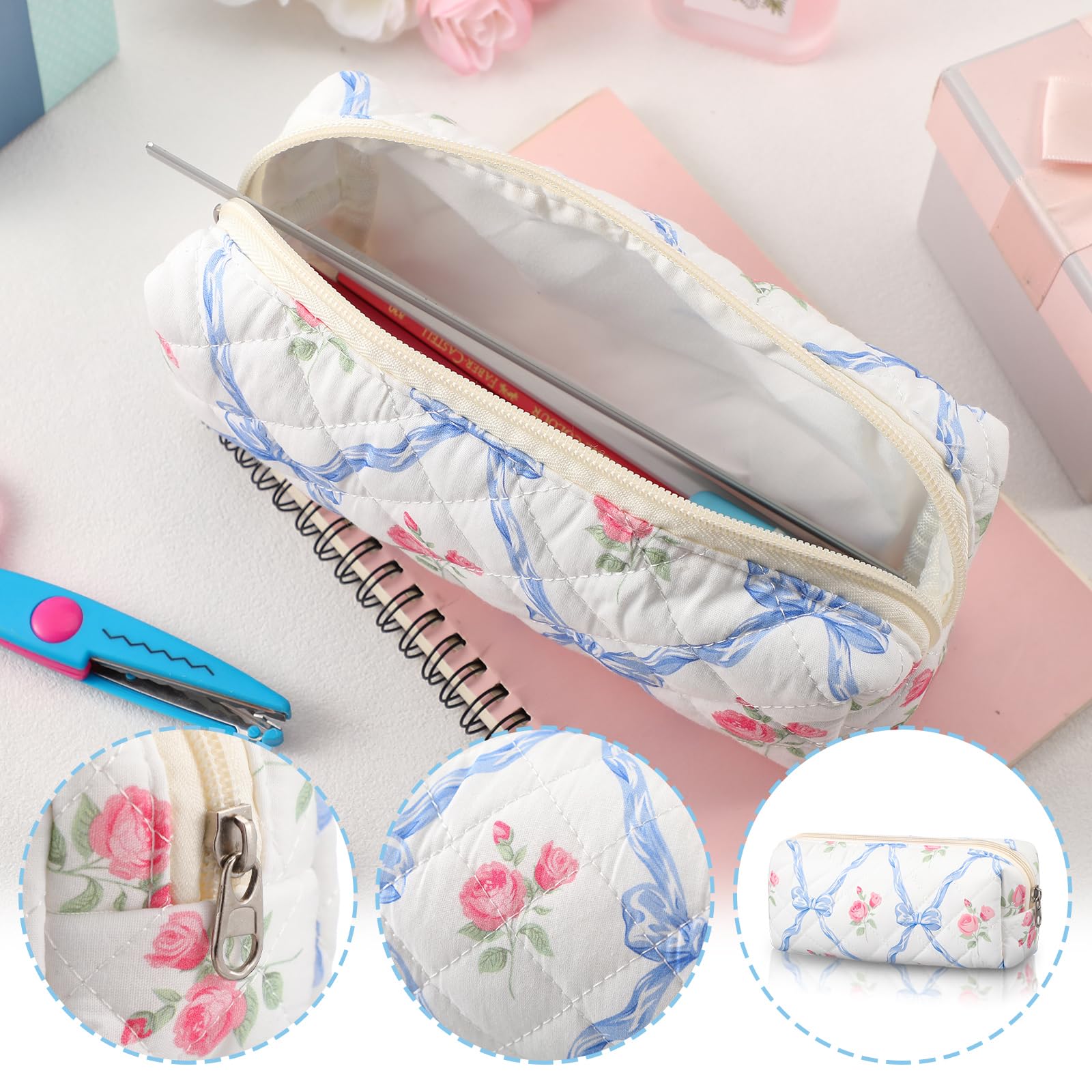 Beautiful Pattern: adorned with stylish flirty bow prints, this blue floral bow pencil case is the ideal accessory for coquette enthusiasts. Retro hand-stitched craftsmanship, outer quilting, unique pattern design and color matching, ensuring you make a statement wherever you go