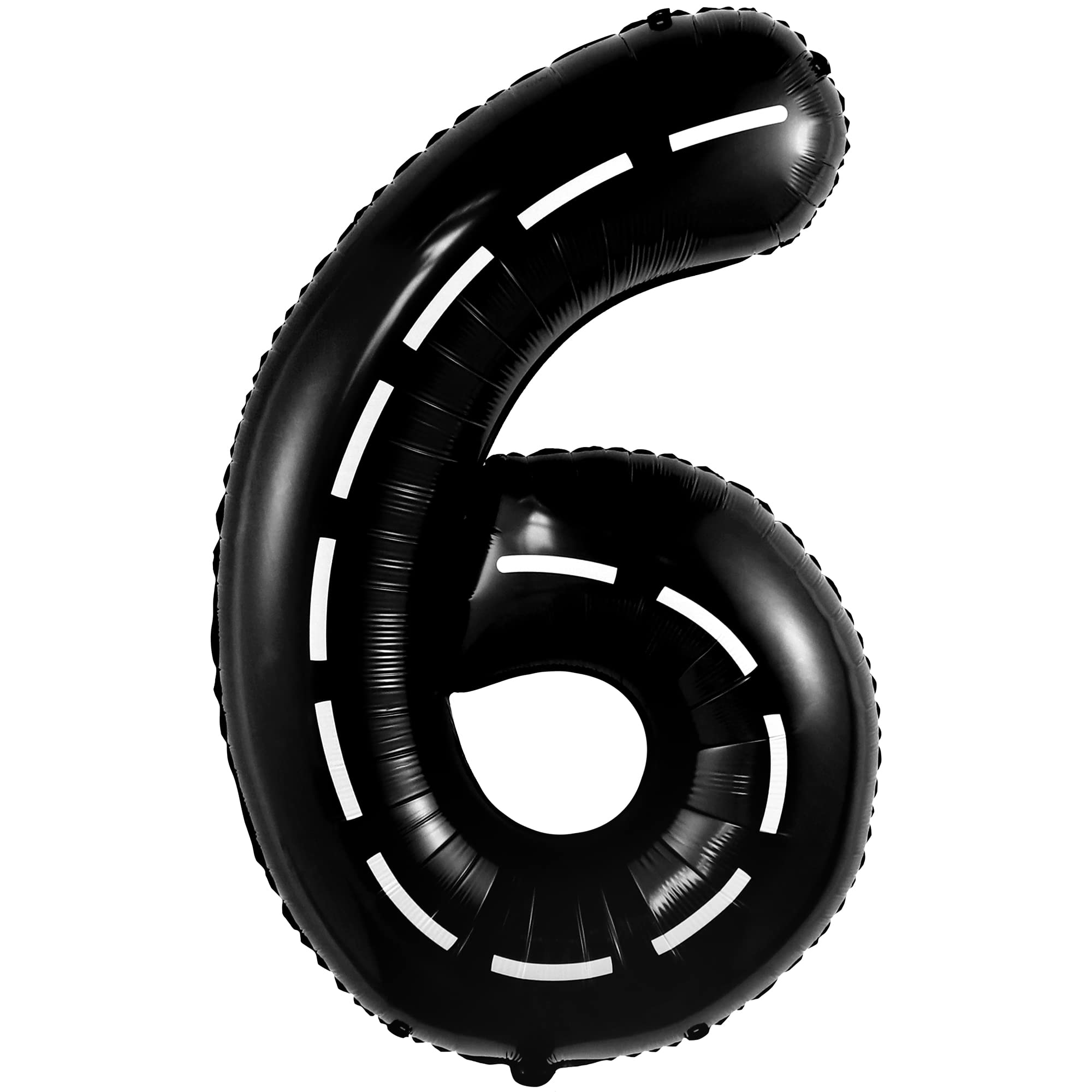 GIANT SIZE - 40 INCH | BEAUTIFUL ROAD THEME NUMBER BALLOONS - This Black Number 6 balloon road 40 inch is the party complement you shouldn’t miss. Add a great impact to your decoration with this giant 40-Inch Number 6 Race Car Mylar Foil Balloon. This 6 Number balloon comes with 1 Black Ribbon and 1 Straw to Inflate balloons. Pair this 6 Road balloon with other Number balloons to create double digits for your race car theme birthday party decorations or anniversary decorations.
