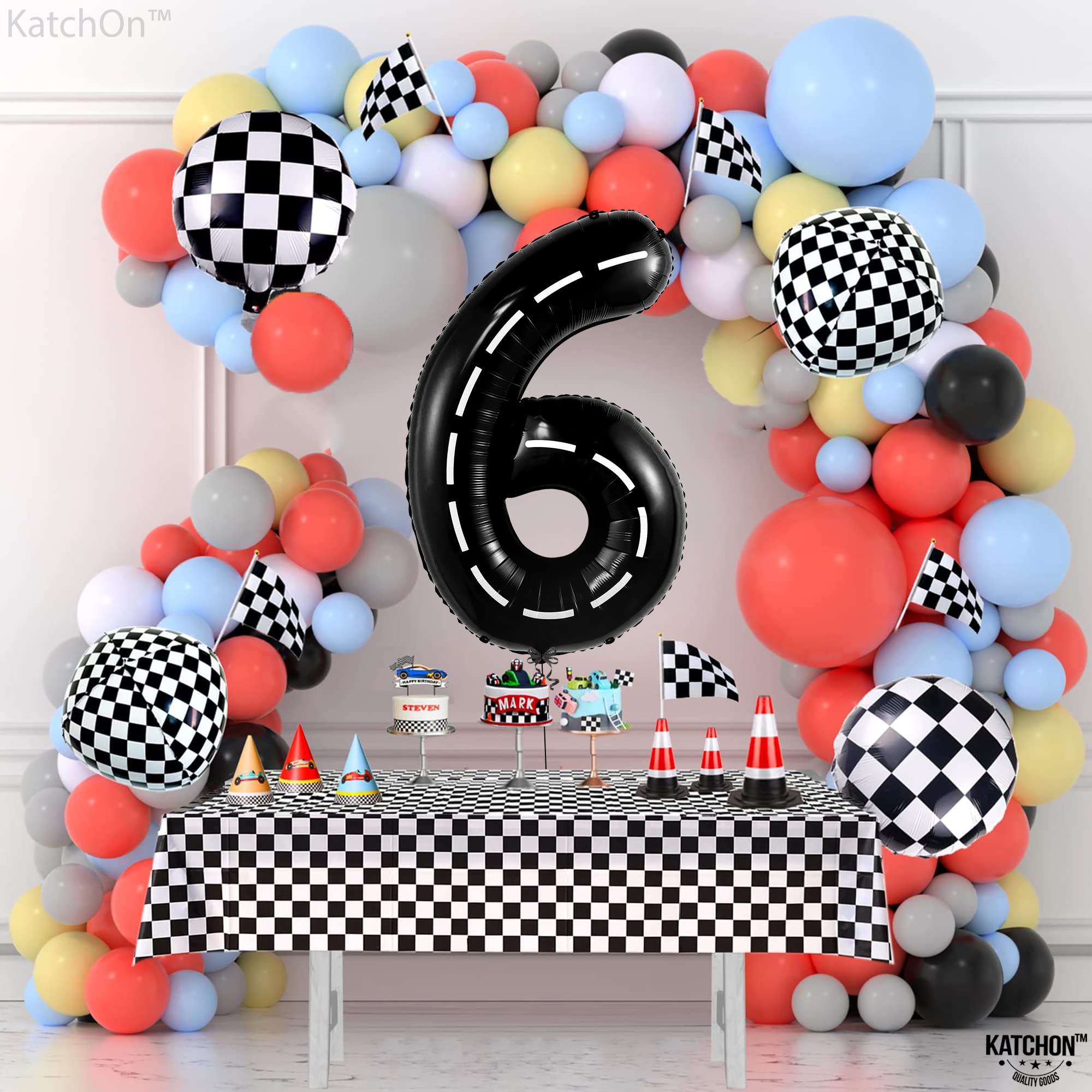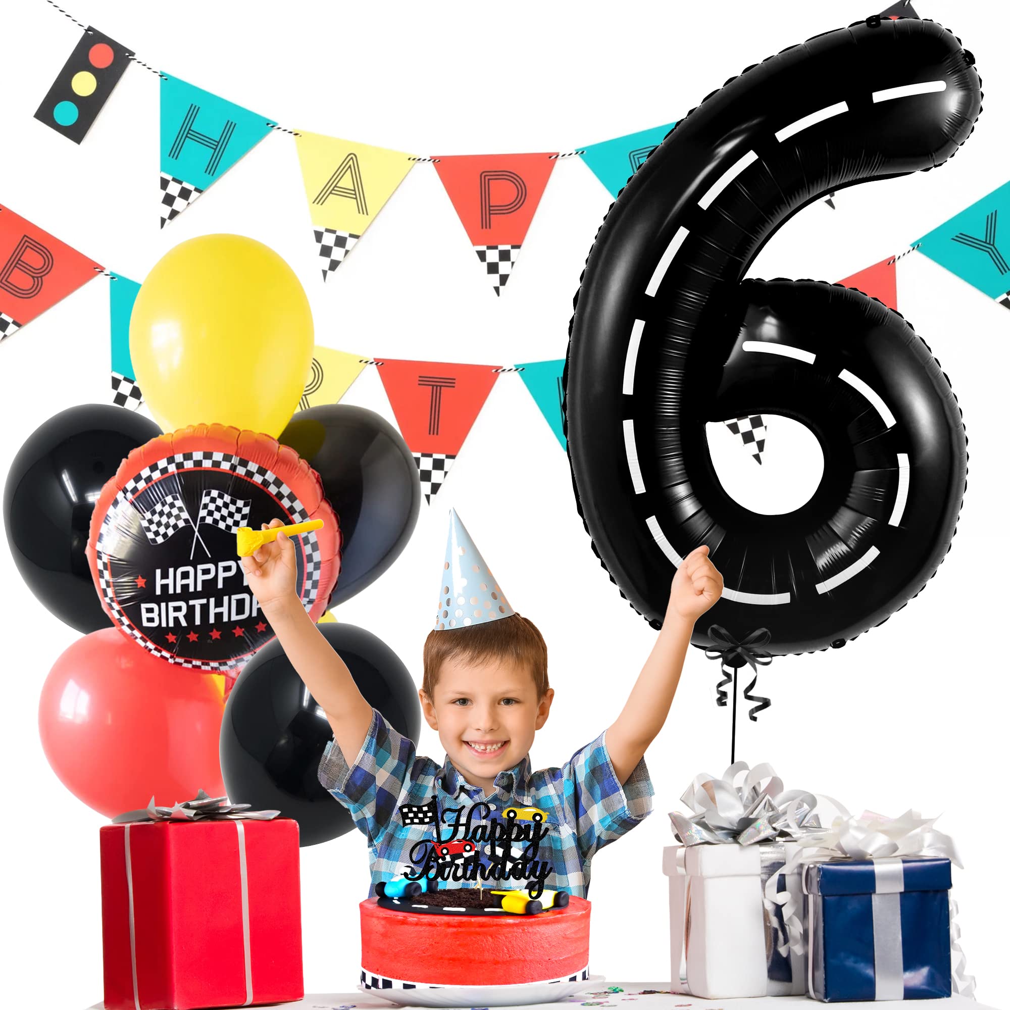 CREATE A CONSTRUCTION THEME PARTY DECOR - Looking for a unique 6 number balloon for your birthday party? This Large balloon for 6 year old is a perfect add-on to a cool race car inspired birthday party set-up. Have a breezy like arrangement with its elegant, exotic race car effect color for 6th construction theme balloons, dump truck party decorations, or 6th road birthday decorations. Mix this Racetrack number 6 balloon with hot wheel balloons for classic car party decorations.