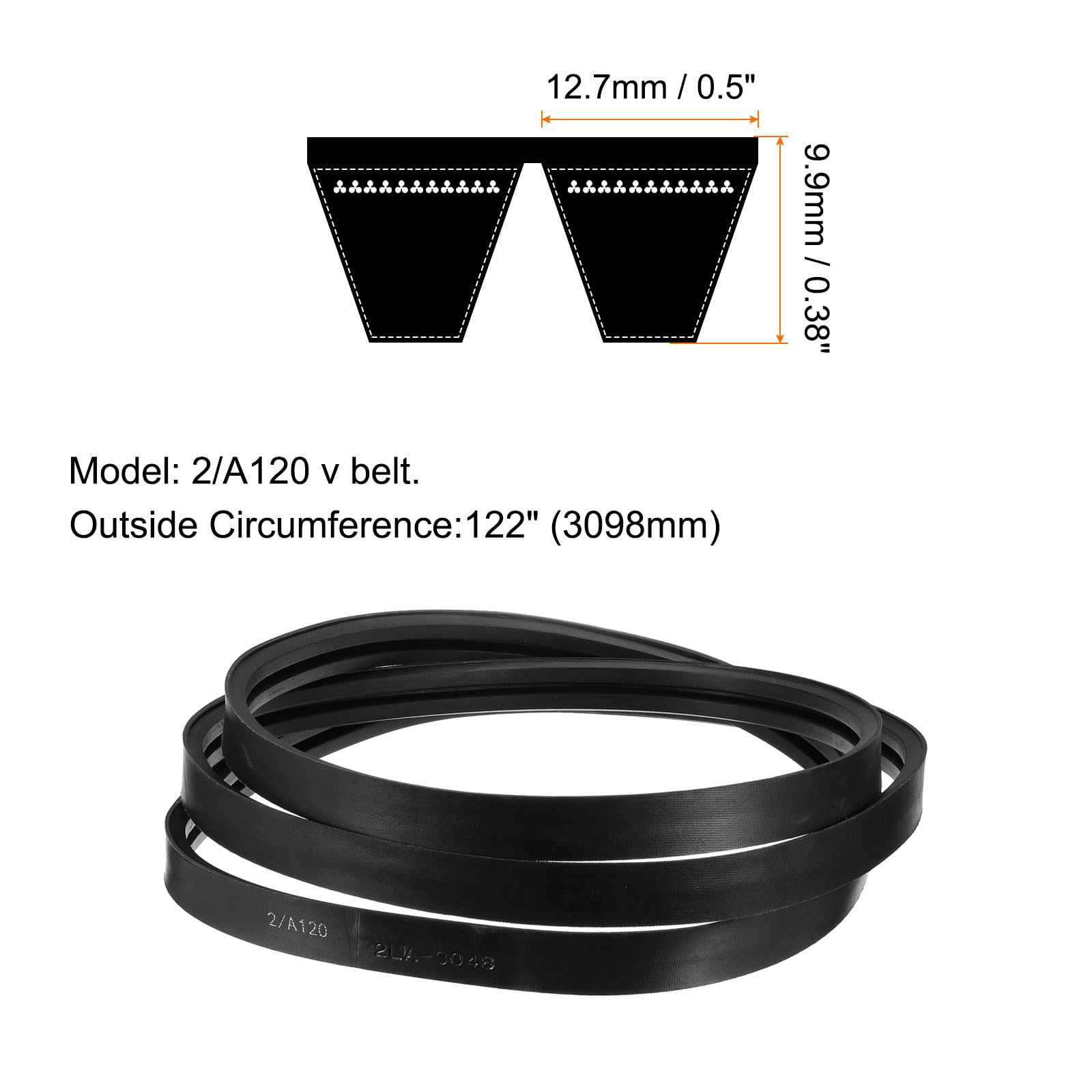 Model: 2/A120 or 2/4L1220 Banded V Belt, 2 Banded. Inner Circumference: 120" (3048mm); Outside Circumference: 122" (3098mm).